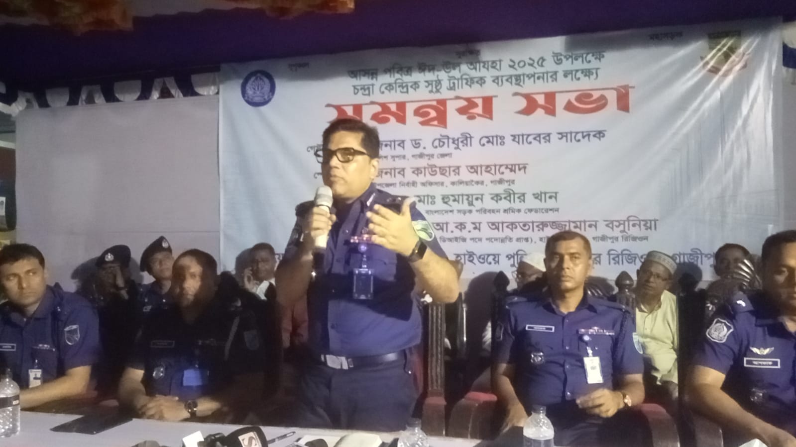 গাজীপুরের কালিয়াকৈর উপজেলার চন্দ্রা এলাকায় আসন্ন পবিএ ঈদ উল আযহা উপলক্ষে সুষ্ট্রফিক ব্যবস্থাপনার লক্ষ্যে সমন্বয় সভা অনুষ্ঠিত হয়েছে।
