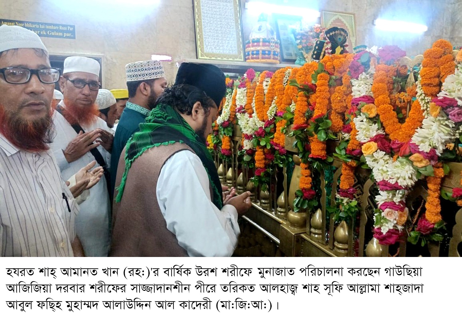 আমানত খান (রহ:) দরবার শরীফে রাতব্যাপী কোরআন শরীফ তেলাওয়াত, জিকির আসকার, মিলাদ, কেয়াম মাহফিলে শাহ্জাদা আবুল ফছ্হি মুহাম্মদ আলাউদ্দিন আল কাদেরী (মা:জি:আ:) উপরোক্ত বক্তব্য প্রদান করেন। উক্ত উরশ শরীফে শরিয়তানুযায়ী ইসলামের উন্নতি এবং দেশ ও জাতির কল্যাণের জন্য বিশেষ মুনাজাত ও দোয়া কামনা করা হয়। এতে বাবাজান কেবলার আশেকীন, গাউছিয়া আজিজিয়া শাহী দরবার শরীফের ভক্ত মুরিদান সহ দেশী—বিদেশী, সরকারী—বেসরকারী উচ্চপদস্থ কর্মকর্তা, জিয়ারত কারীগণ উপস্থিত হয়ে