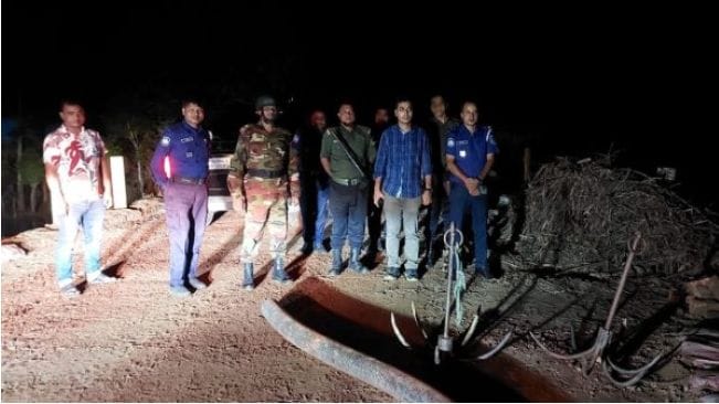 দুর্গাপুরে সোমেশ্বরী নদী থেকে অবৈধভাবে বালু উত্তোলন কালে ০৪ জুন (বোধবার) যৌথবাহিনীর অভিযানে বালু উত্তোলনে ব্যবহৃত ইঞ্জিন চালিত একটি নৌকা,বালু উত্তোলনের তিনটি মেশিন ও কিছু পাইপ সহ সকল সরঞ্জাম জব্দ করা হয়েছে।