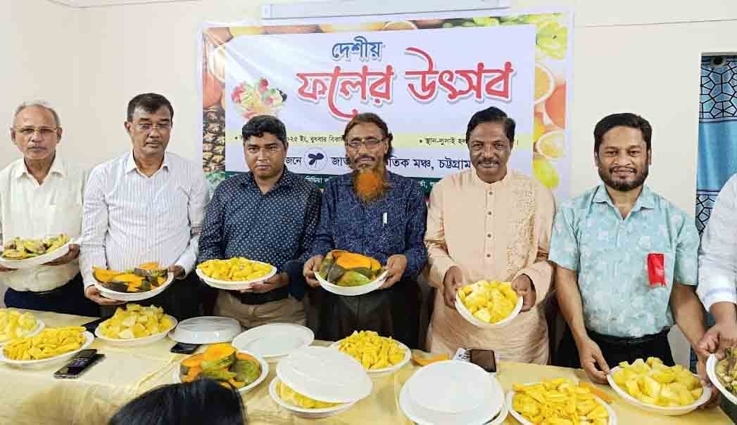 জাতীয় সাংস্কৃতিক মঞ্চ চট্টগ্রাম আয়োজিত গতকাল বিকাল ৫টায় নগরীর চেরাগি পাহাড়স্থ লুসাই ভবনের লুসাই হলে দেশীয় ফল উৎসব অনুষ্ঠিত হয়। জাতীয় সাংস্কৃতিক মঞ্চের সভাপতি সাংবাদিক কামরুল হুদার সভাপতিত্বে ও সাধারণ সম্পাদক গীতিকার নজরুল ইসলামের সঞ্চালনায় ফল উৎসব সেভেন রিং সিমেন্ট নির্বাহী অফিসার মোহাম্মদ এয়াকুবের সহযোগিতায় অনুষ্ঠিত হয়।