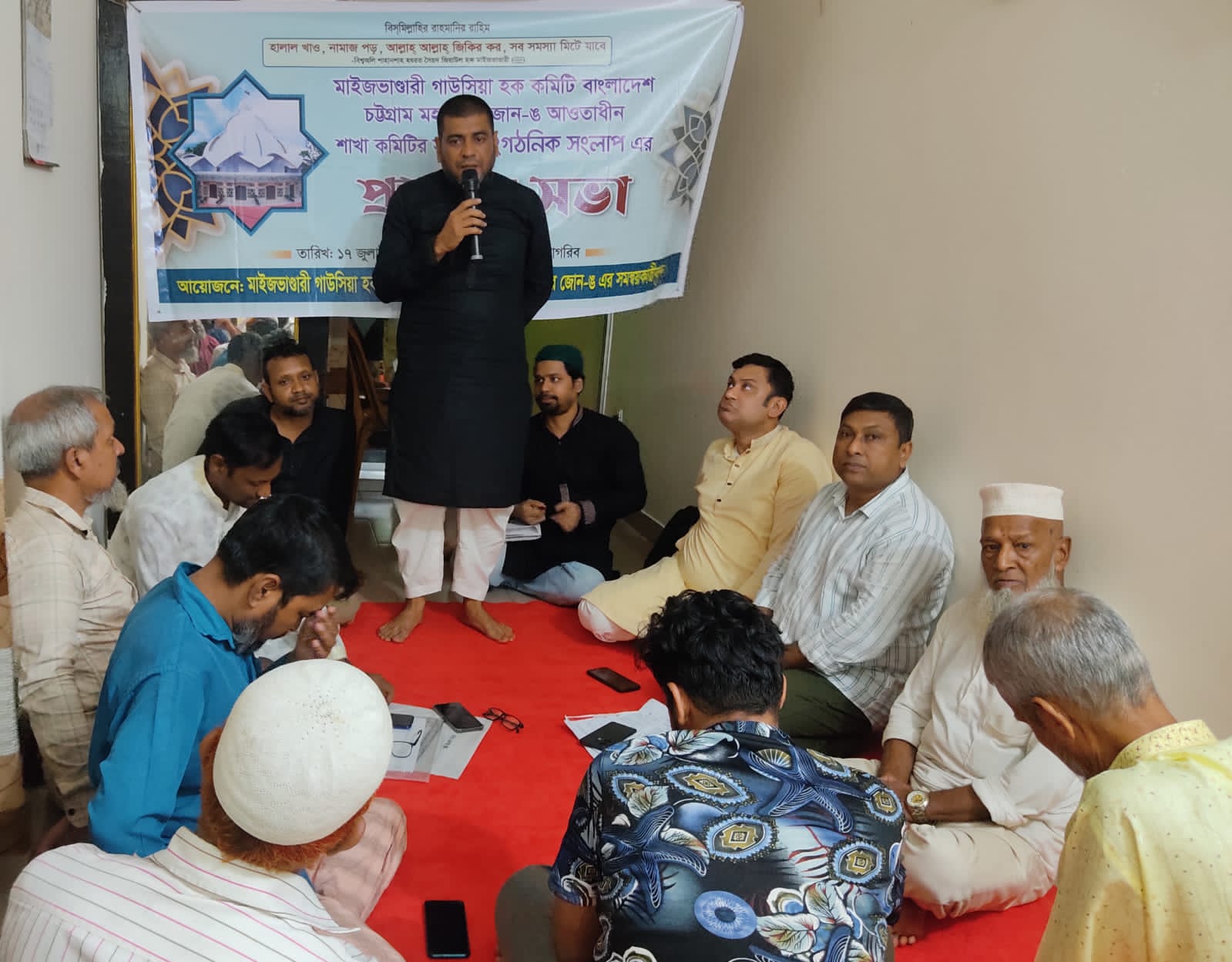 মাইজভাণ্ডারী গাউসিয়া হক কমিটি বাংলাদেশ চট্টগ্রাম মহানগর ঙ জোনের সমন্বয়কারীবৃন্দের আয়োজনে সাংগঠনিক সংলাপের প্রস্তুতি সভা শামসুল ইসলামের সভাপতিত্বে অনুষ্ঠিত হয়।