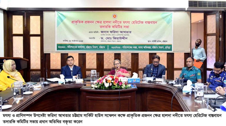তিনি মঙ্গলবার সকালে চট্টগ্রাম সার্কিট হাউজ সম্মেলন কক্ষে প্রাকৃতিক প্রজনন ক্ষেত্র হালদা নদীতে মৎস্য হেরিটেজ বাস্তবায়ন তদারকি কমিটি’র ১৫তম সভায় প্রধান অতিথির বক্তব্যে এসব কথা বলেন।