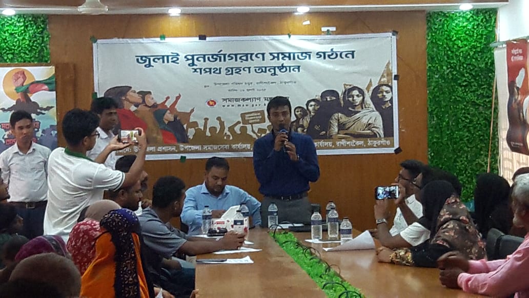 সারাদেশের ন্যায় ঠাকুরগাঁওয়ের রাণীশংকৈলে জুলাই পুনর্জাগরণে সমাজ গঠনে শপথ গ্রহণ ও আলোচনা সভা অনুষ্ঠিত হয়েছে।
