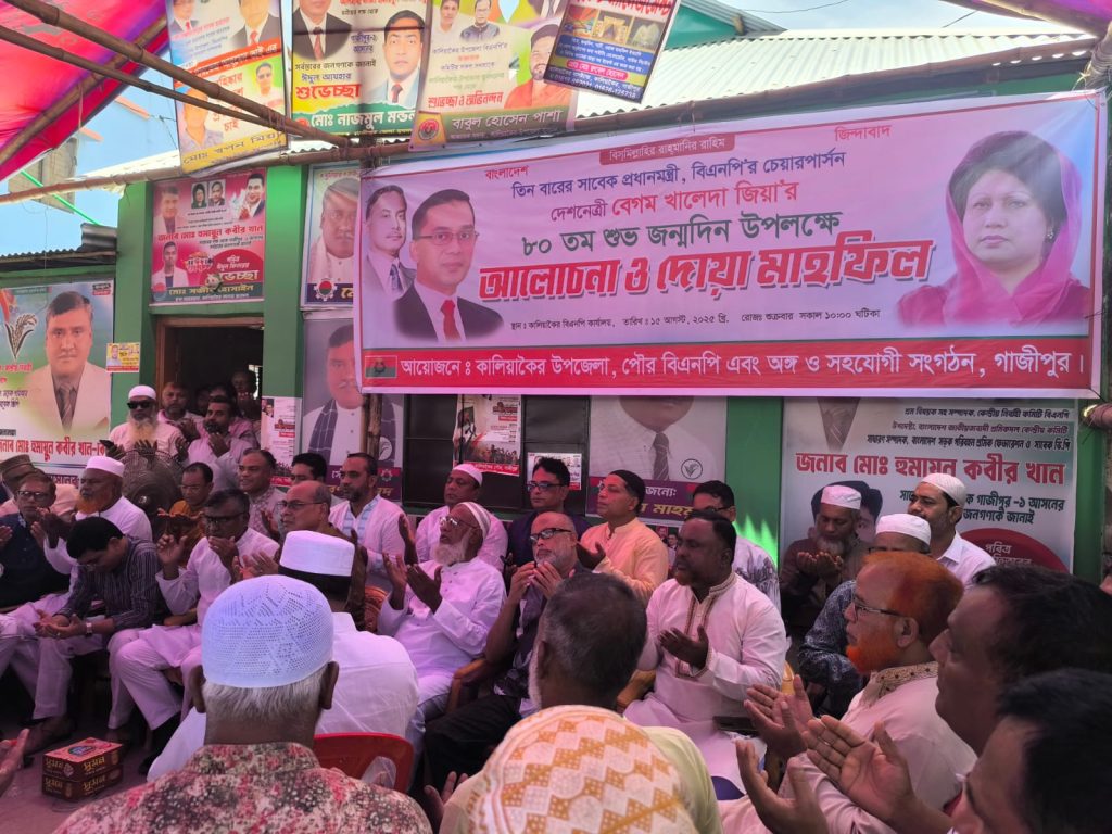 বাংলাদেশ জাতীয়তাবাদী দল (বিএনপি)-এর চেয়ারপারসন ও সাবেক প্রধানমন্ত্রী বেগম খালেদা জিয়ার ৮০তম জন্মদিন উপলক্ষে কালিয়াকৈরে আলোচনা সভা ও দোয়া মাহফিল অনুষ্ঠিত হয়েছে।