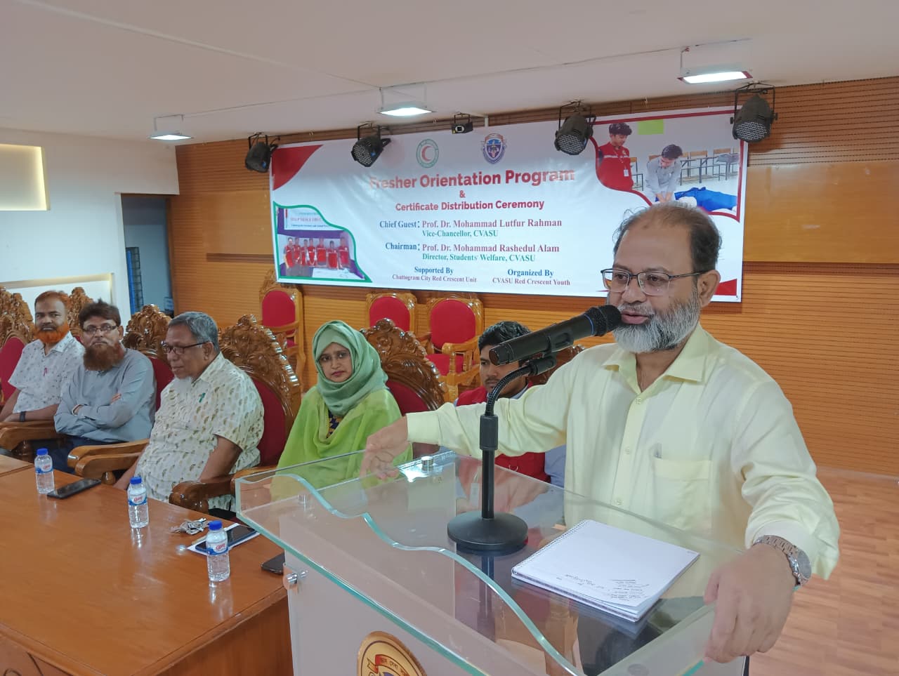 সভাপতির বক্তব্যে পরিচালক (ছাত্রকল্যাণ) প্রফেসর ড. মোহাম্মদ রাশেদুল আলম নবীন শিক্ষার্থীদের উদ্দেশ্যে বলেন, কেবল একাডেমিক উৎকর্ষ অর্জনই যথেষ্ট নয়; শিক্ষার্থীদের সহশিক্ষা কার্যক্রমেও সক্রিয়ভাবে অংশগ্রহণ করতে হবে। তিনি শিক্ষার্থীদের জীবনে সততা, দায়িত্বশীলতা ও মানবসেবামূলক মনোভাব গড়ে তোলার আহ্বান জানান।অনুষ্ঠানে স্বাগত বক্তব্য রাখেন সিভাসু যুব রেড ক্রিসেন্টের উপদলনেতা সৌরভ চৌধুরী। এ সময় মানসিক স্বাস্থ্য বিষয়ক সেমিনার ও রেড ক্রিসেন্টের কার্যক্রমভিত্তিক প্রামাণ্যচিত্র প্রদর্শিত হয়। শেষে প্রাথমিক চিকিৎসা প্রশিক্ষণ সম্পন্নকারী শিক্ষার্থীদের মাঝে সার্টিফিকেট বিতরণ করা হয়।
