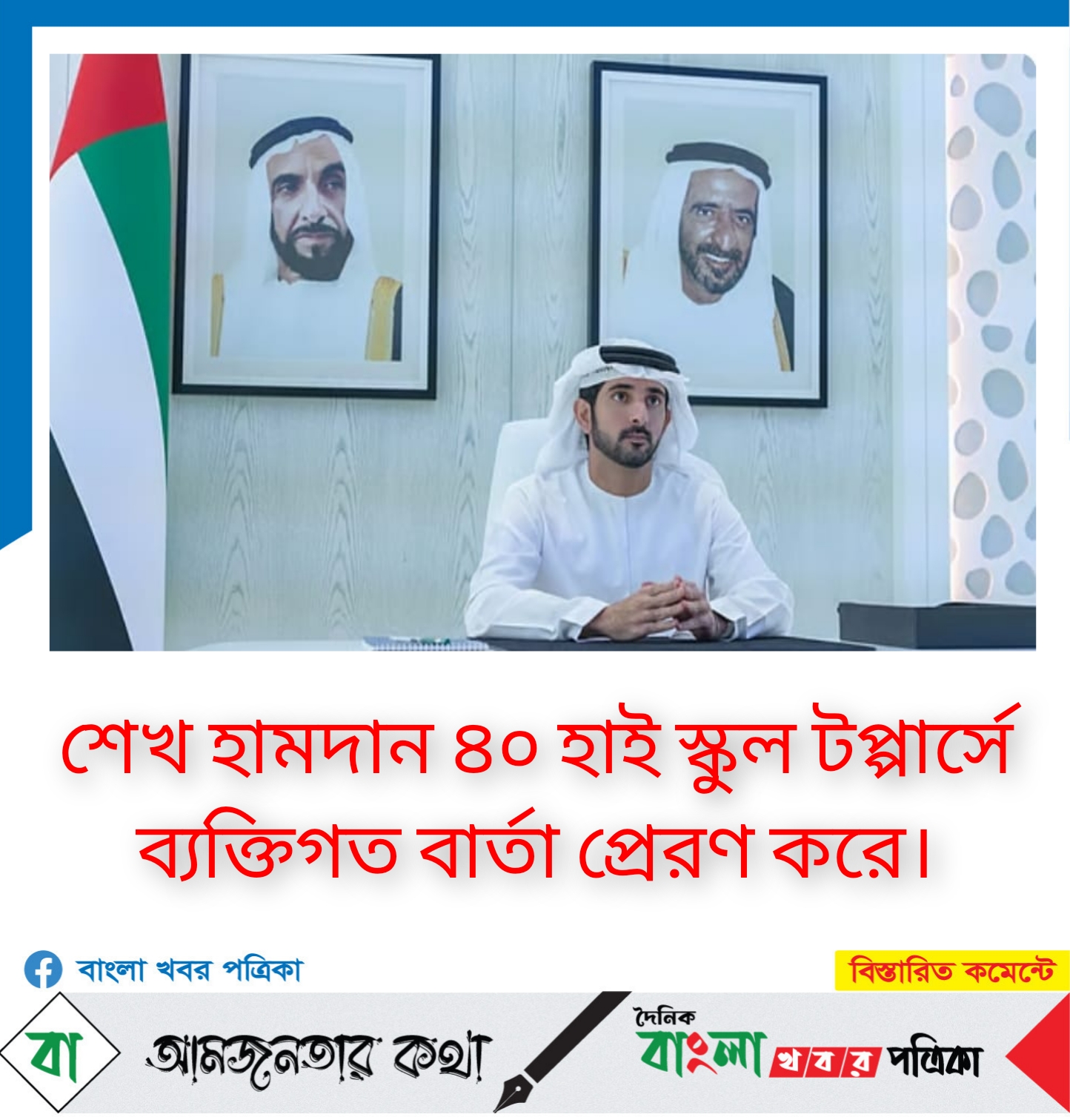 দুবাইয়ের উচ্চ বিদ্যালয়ের শিক্ষার্থীরা যারা এই বছর ব্যতিক্রমী একাডেমিক ফলাফল অর্জন করেছেন তারা দুবাইয়ের ক্রাউন প্রিন্স শেখ হামদান বিন মোহাম্মদ বিন রশিদ আল মাকতুমের কাছ থেকে ব্যক্তিগত অভিনন্দন বার্তা পেয়েছিলেন।