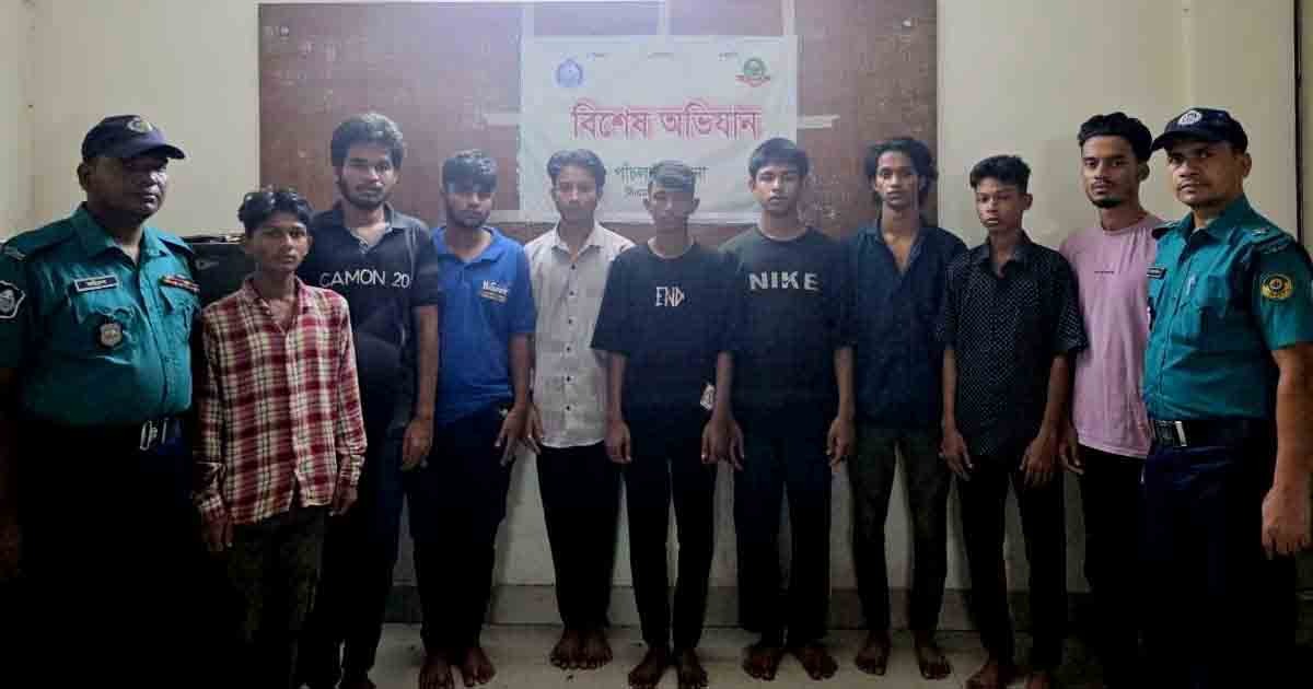 গ্রেফতার কৃতরা হলো, মো. ইমাম হোসেন রোহান (১৬), সিয়াম হোসেন সামি (১৫), হেলাল উদ্দিন (১৯), তারেকুর রহমান শাহাদাত (১৭), আহমেদ ইরফান (১৫), মো. রাকিব হাসান (১৬), স্বপ্ন দাশ (১৬), রবিউল মিল্লাত ওয়াসিফ (১৭) এবং ফাহিম মোমিন (১৭)। পুলিশ বলেছে, এদের বিরুদ্ধে মামলাও রয়েছে।