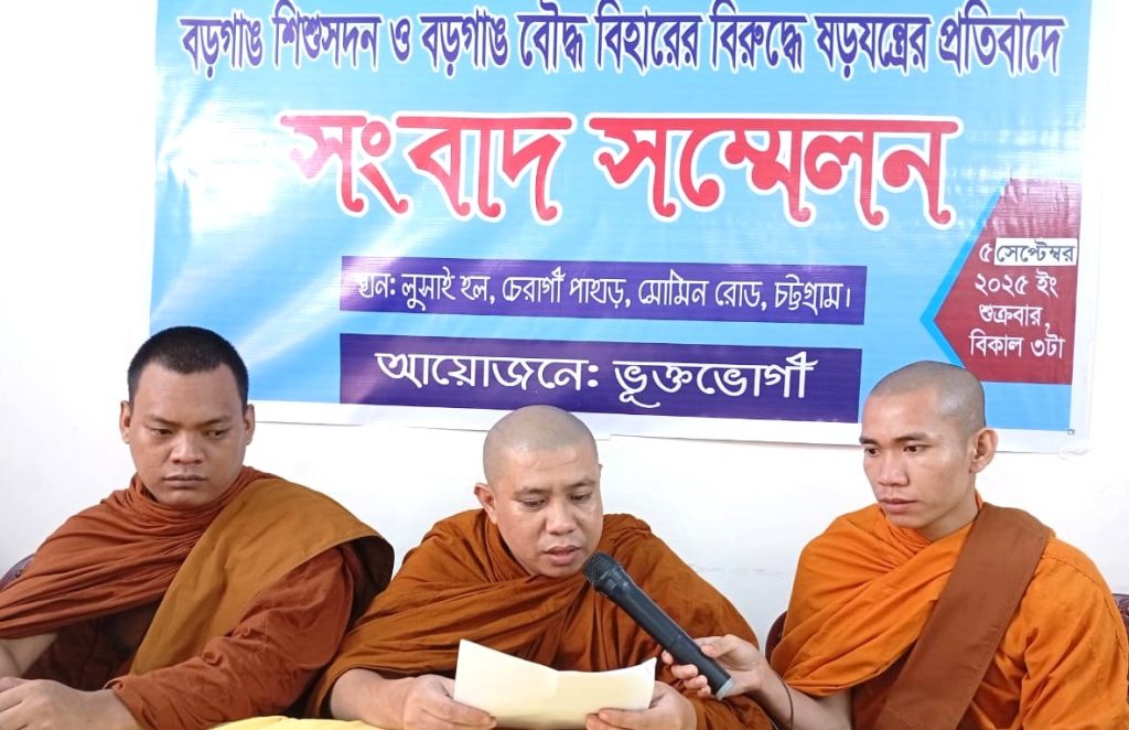 সংবাদ সম্মেলনে লিখিত বক্তব্যে আরো জানান, আমি জেনে ও শুনে খুবই মর্মহত, হতাশ ও হতবাক যে, স্থানীয় অমল বড়–য়ার সভাপতিত্বে গত ২০২৪ সালের ১২ এপ্রিল দক্ষিণ শাহ মিরপুরস্থ বড়–য়া পাড়ার দায়ক-দায়িকাদের আলোচনা সভায় অত্র বিহারে অনুষ্ঠিত হয়। কার্যবিবরণী বহিতে লেখা পড়ে আমি অত্যন্ত মর্মাহত এবং হতাশ। কারণ তাঁরা এ যাবৎ পর্যন্ত কোন সভা বা মিটিং বড়গাঙ বৌদ্ধ বিহারে করেননি। যাবতীয় সভা/ মিটিং তাঁরা স্থানীয় বড়–য়া পাড়ার বৌদ্ধ মন্দিরেই করে থাকে।