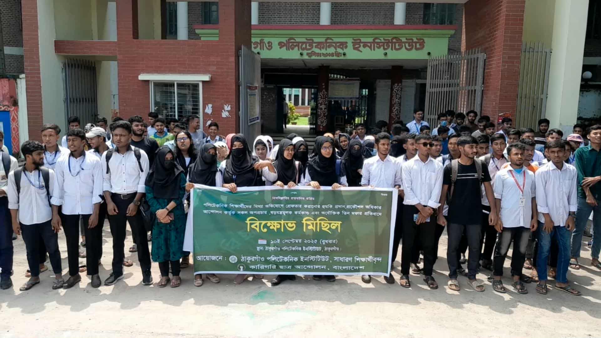 আজ ১০ সেপ্টেম্বর সকালে কারিগরি ছাত্র আন্দোলন বাংলাদেশের উদ্যোগে এ কর্মসূচি পালন করা হয়।কর্মসূচি উপলক্ষে সকাল সাড়ে ১১ টায় ঠাকুরগাঁও পলিটেকনিক ইনস্টিটিউটের শিক্ষার্থীরা মূল ফোটকের সামনে থেকে একটি বিক্ষোভ মিছিল নিয়ে পাশের আঞ্চলিক সড়ক ঘুরে একই স্থানে গিয়ে সমবেত হন।