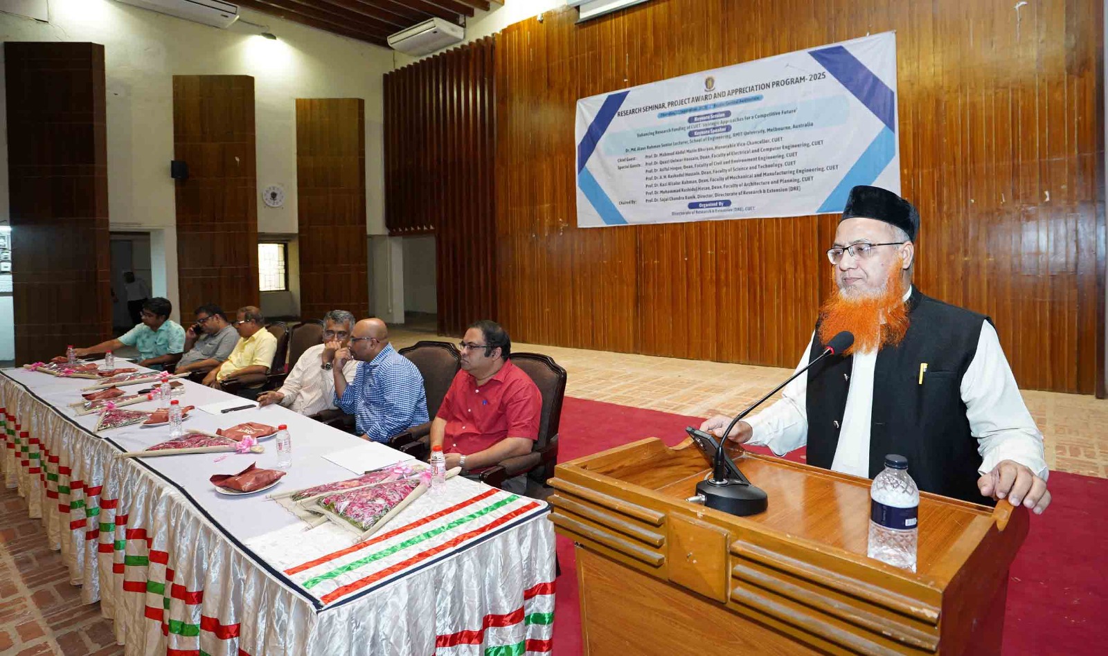 বৃহস্পতিবার সকালে চুয়েটের কেন্দ্রীয় অডিটোরিয়ামে গবেষণা ও সম্প্রসারণ অধিদপ্তরের উদ্যোগে আয়োজিত "রিসার্চ সেমিনার, প্রোজেক্ট এওয়ার্ড ও অ্যাপ্রিসিয়েশন প্রোগ্রাম ২০২৫-এ প্রধান অতিথির বক্তব্যে তিনি এসব কথা বলেন। এতে বিশেষ অতিথি ছিলেন তড়িৎ ও কম্পিউটার প্রকৌশল অনুষদের ডীন অধ্যাপক ড. কাজী দেলোয়ার হোসেন, পুর ও পরিবেশ কৌশল অনুষদের ডীন অধ্যাপক ড. আসিফুল হক, বিজ্ঞান ও প্রযুক্তি অনুষদের ডীন অধ্যাপক ড. এ.এইচ. রাশেদুল হোসেন, স্থ্যাপত্য ও পরিকল্পনা অনুষদের ডীন অধ্যাপক ড. মুহাম্মদ রাশিদুল হাসান। এতে কী-নোট স্পীকার ছিলেন অস্ট্রেলিয়ার আরএমআইটি ইউনিভার্সিটি মেলবোর্ন এর স্কুল অব ইঞ্জিনিয়ারিংয়ের সিনিয়র লেকচারার ড. মো: আতাউর রহমান। এতে সভাপতিত্ব করেন গবেষণা ও সম্প্রসারণ অধিদপ্তর এর পরিচালক অধ্যাপক ড. সজল চন্দ্র বনিক।