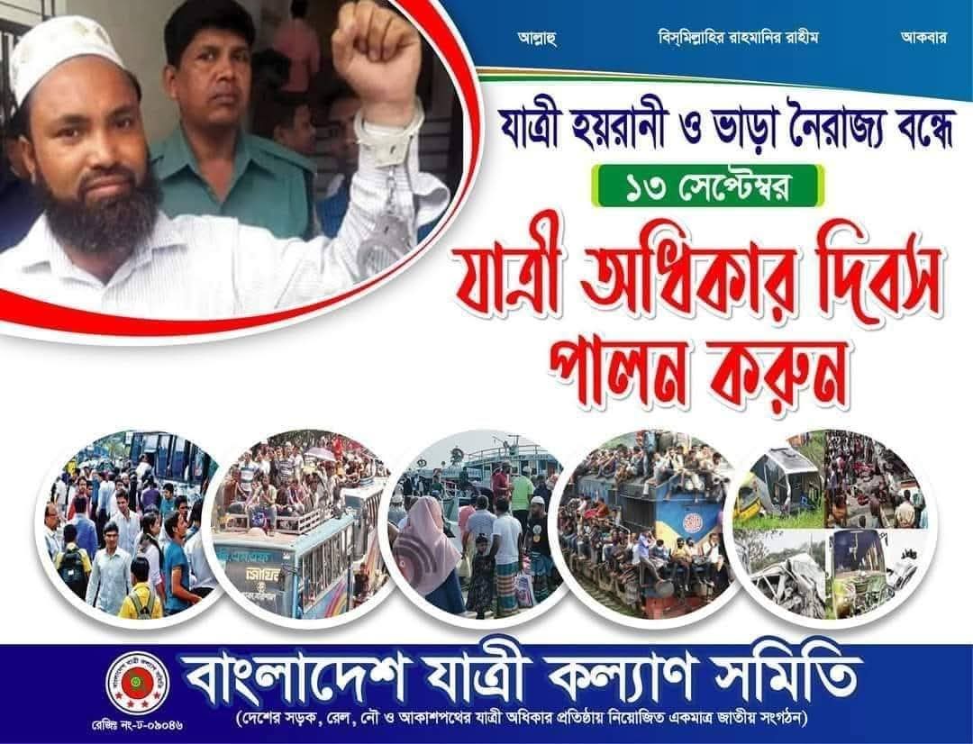 আগামী কাল ১৩ সেপ্টেম্বর শনিবার যাত্রী অধিকার দিবস। যাত্রী হয়রানি, ভাড়া অরাজকতা, পরিবহন বিশৃঙ্খলা, নৈরাজ্য, দুর্ঘটনা, অন্যায্য ও অগ্রহণযোগ্য কার্যকলাপের বিরুদ্ধে দাবি উত্থাপনের জন্য বাংলাদেশে ২০১৯ সালে এটিকে প্রতীকী দিন হিসেবে ঘোষণা করা হয়েছিল এবং ২০২০ সালে প্রথমবারের মতো এই দিবসটি পালিত হয়। এবার দিবসটির মূল প্রতিপাদ্য নির্ধারণ করা হয়েছে “ন্যায্য ভাড়ায় হয়রানিমুক্ত ভ্রমণের অধিকার”। দিবসটি উপলক্ষে বাংলাদেশ যাত্রী কল্যাণ সমিতি (পিডাব্লিউএবি) সহ যাত্রী অধিকার এবং সড়ক নিরাপত্তায় নিয়োজিত বিভিন্ন সংগঠন বিস্তারিত কর্মসূচি গ্রহণ করেছে।