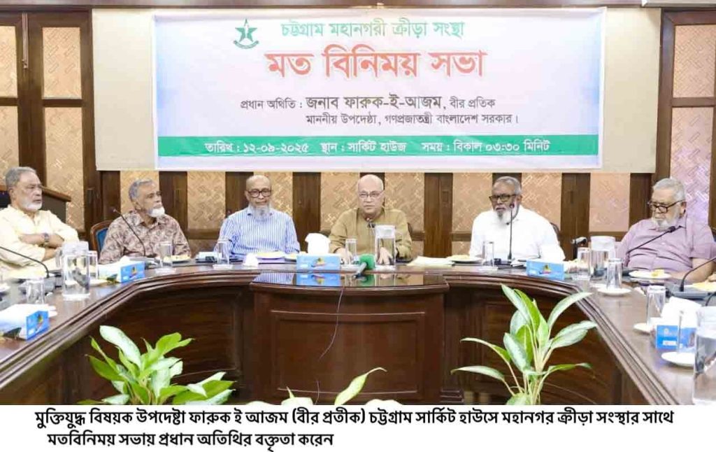 খেলাধুলা শুধু বিনোদন নয় উল্লেখ করে মুক্তিযুদ্ধ বিষয়ক উপদেষ্টা ফারুক-ই-আজম বীর প্রতীক বলেছেন, এটি একটি জাতির প্রাণশক্তিও। তরুণদের মাঝে খেলাধুলার প্রতি আগ্রহ তৈরি করতে এবং তাদের মাদক, সন্ত্রাস ও অসামাজিক কার্যকলাপ থেকে দূরে রাখতে বিভিন্ন ধরনের ইভেন্টের আয়োজন করতে হবে। শুক্রবার চট্টগ্রাম সার্কিট হাউসের সম্মেলন কক্ষে চট্টগ্রাম মহানগরী ক্রীড়া সংস্থার মতবিনিময় সভায় প্রধান অতিথির বক্তব্যে এসব কথা বলেন। উপদেষ্টা বলেন, মহানগর ক্রীড়া অঙ্গন কেবল একটি খেলার মাঠ নয়, এটি তরুণদের স্বপ্ন গড়ে তোলার একটি কেন্দ্র।এখানে যারা খেলবে, তারা শুধু জয় বা পরাজয়ের স্বাদই পাবে না, বরং জীবনের জন্য মূল্যবান শিক্ষা অর্জন করবে। খেলাধুলার মধ্য দিয়ে তরুণরা ধৈর্য, সহমর্মিতা ও আত্মনিবেদন শিখবে, যা তাদের ব্যক্তিগত ও সামাজিক জীবনে সফল হতে সাহায্য করবে।