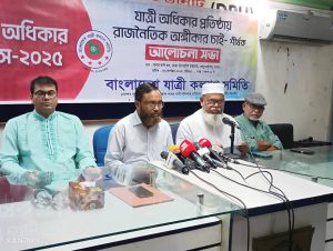 তিনি আরো বলেন, সড়ক দুর্ঘটনা, যানজট ও বিশৃঙ্খলা রোধে ২০১৮ সালে প্রণীত সড়ক পরিবহন আইন প্রণয়নে যাত্রী ও নাগরিক সমাজের মতামত উপেক্ষা করায় এসব সমস্যার সমাধান দিতে পারেনি। উন্নত গণপরিবহনের অভাবে দেশে রাইড শেয়ারিং মোটরসাইকেল, ইজিবাইক, অটোরিক্সার মতো ছোট ছোট যানবাহন দেশের প্রধান বাহনে পরিনত হয়েছে। ৫৬ শতাংশ মানুষ বাধ্য হয়ে প্রাইভেট পরিবহন ব্যবহার করছে।