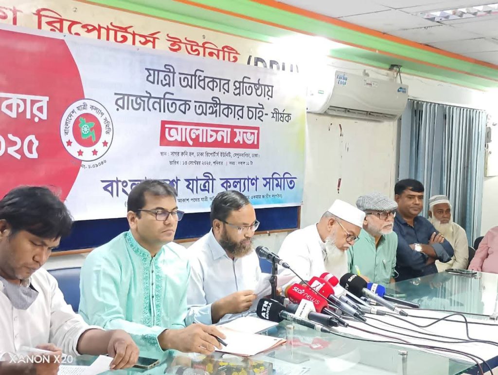 আজ ১৩ সেপ্টেম্বর, শনিবার সকালে নগরীর ঢাকা রিপোটার্স ইউনিটিতে যাত্রী অধিকার দিবসের আলোচনা সভায় সংগঠনের মহাসচিব মোঃ মোজাম্মেল হক চৌধুরী এই দাবী তুলে ধরে বলেন, যাত্রী কল্যাণ সমিতির পর্যবেক্ষণে দেখা গেছে, গত ১১ বছরে ৬২৬১৯ টি সড়ক দুর্ঘটনায় ৮৬৬৯০ জন নিহত, ১৫৩২৫৭ জন আহত হয়েছে। বিশ্বব্যাংকের হিসেবে অসহনীয় যানজটে প্রতিদিন কেবল রাজধানীতে ৩২ লাখ কর্মঘণ্টা নষ্ট হচ্ছে। যার আর্থিক ক্ষতি ৯৮ হাজার কোটি টাকা। জ্বালানি অপচয় প্রায় ১১ হাজার কোটি টাকার।