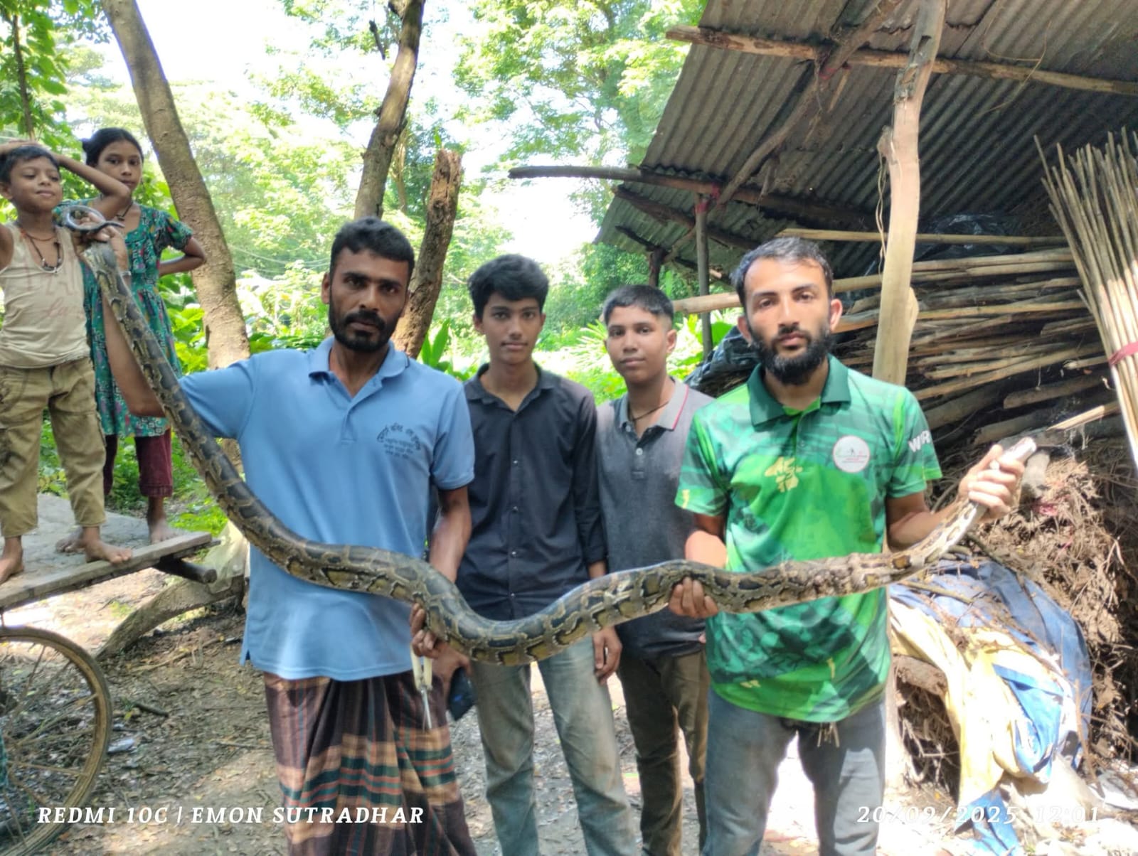 তিনি বলেন, বসত বাড়ির পাশে ঘেরা দেওয়া জালে অজগরটি আটকে গিয়েছিল। খবর পেয়ে জাল কেটে সাপটি উদ্ধার করা হয়। বার্মিজ প্রজাতির অজগরটি লম্বায় ১০ ফুট এবং ওজন ৮-৯ কেজি হবে। তিনি জানান, জালে আটকে পড়ার কারণে অজগরটি আহত হয়েছে। সাপটিকে সুস্থ করে জঙ্গলে অবমুক্ত করা হবে।