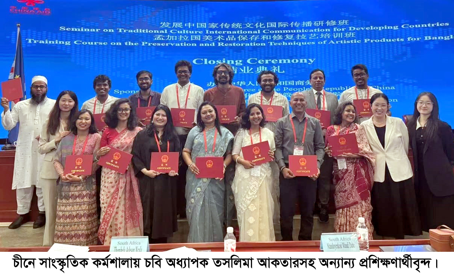 চীন সাংস্কৃতিক নিদর্শন সুরক্ষা ও পুনরুদ্ধার কশল সম্পর্কিত একটি প্রশিক্ষণ কোর্স সম্রতি চীনের বেইজিং শহরের একটি কনফারেন্স হলে অনুষ্ঠিত হয়। এতে ৩ সদস্য বিশিষ্ট বাংলাদশী শিল্প প্রতিনিধি দল অংশগ্রহণ করন।