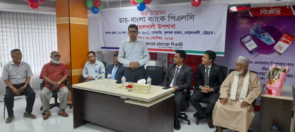 বআনুষ্ঠানিকভাবে ব্যাংকের এ শাখার উদ্বোধন করেন। নতুন শাখার সুষ্ঠু পরিচালনা এবং দেশের অগ্রগতি ও ব্যবসা-বাণিজ্যের সমৃদ্ধির জন্য মহান আল্লাহর অশেষ রহমত কামনা করে দোয়া মাহফিলের মাধ্যমে উদ্বোধন অনুষ্ঠানের কার্যক্রম শুরু করা হয়। উদ্বোধন দিন থেকেই ডাচ্-বাংলা ব্যাংকের অন্যান্য শাখার মতো এ শাখায়ও অনলাইন ব্যাংকিং, এটিএম ও সিআরএম সার্ভিস, রিটেল, এসএমই এবং করপোরেট লোন, ক্রেডিট কার্ড, এজেন্ট ব্যাংকিং, মোবাইল ব্যাংকিং এবং রেমিট্যান্স সার্ভিস প্রদান করছে। স্থানীয় গণ্যমান্য ব্যক্তি, ব্যবসায়ী ও শিল্পপতিএবং আমন্ত্রিত অতিথিরা অনুষ্ঠানে উপস্থিত ছিলেন।