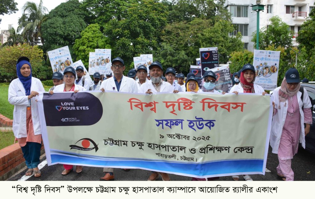‘লাভ ইউর আইস’ এই প্রতিপাদ্য বিষয়কে সামনে রেখে চট্টগ্রাম চক্ষু হাসপাতাল ও প্রশিক্ষণ কেন্দ্রে (সিইআইটিসি) ‘বিশ্ব দৃষ্টি দিবস-২০২৫’ উদ্যাপিত হয়েছে। অন্ধত্ব প্রতিরোধ এবং চোখের সমস্যা সম্পর্কে সাধারণের মধ্যে সচেতনতা ছড়িয়ে দিতে ২০০০ সাল থেকে প্রতিবছর অক্টোবরে বিশ্বব্যাপী দিবসটি পালিত হয়ে আসছে।