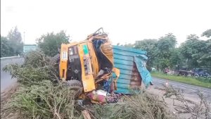 এতে কাভার্ডভ্যানটি ছিটকে সড়কের অপরপাশে চলে যায়। এ সময় ওই কাভার্ডভ্যানকে পেছন থেকে আরেকটি সজোরে বাস ধাক্কা দেয়। ঘটনাস্থলে কাভার্ডভ্যান চালক শামীম আহম্মেদের মৃত্যু হয়।