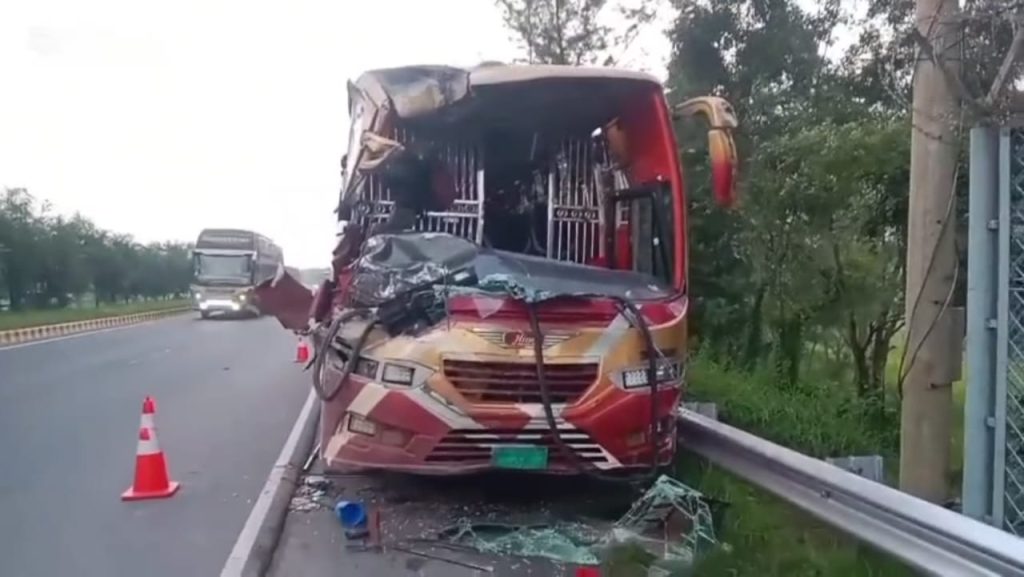 হাইওয়ে পুলিশ জানান, রাজধানী ঢাকা থেকে বরিশাল যাচ্ছিল লাবিবা পরিবহনের একটি যাত্রীবাহী বাস। ঢাকা-ভাঙ্গা এক্সপ্রেসওয়ের শিবচরের কুতুবপুরে এলাকায় আসলে যাত্রীবাহী বাসটি সামনে থাকা একটি কাভার্ডভ্যানকে ধাক্কা দেয়।