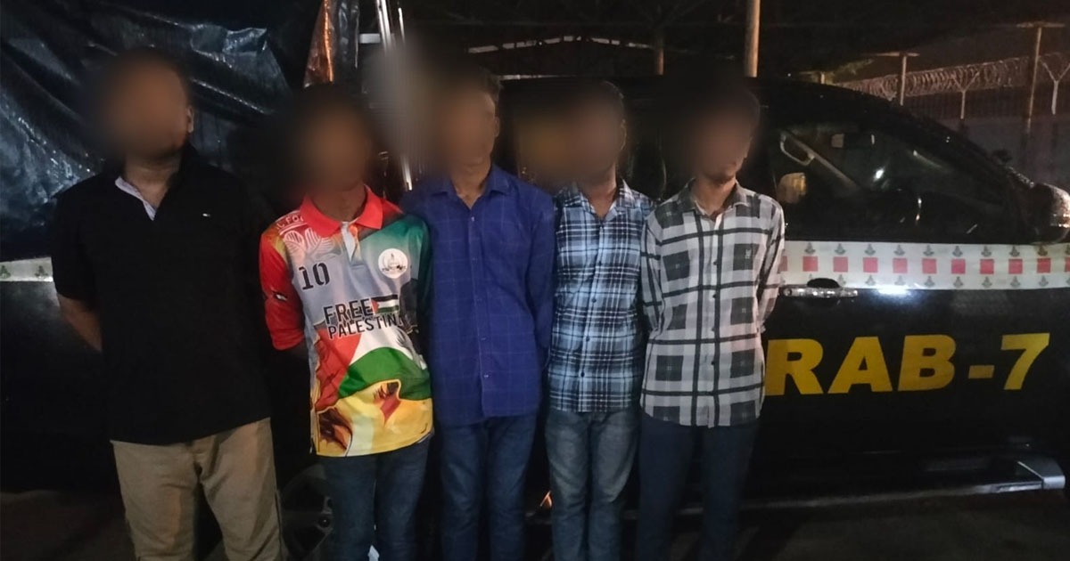 চট্টগ্রাম মহানগরে অপহৃত যুবককে উদ্ধার করেছে র্যাব-৭। এ সময় অপহরণের মূলহোতাসহ ৫ জনকে গ্রেফতার করা হয়েছে। গ্রেপ্তারকৃতরা হল- মুছা (২২), মো. সোহেল (২৫), মো. রিয়াজ (২৪), মো. তাসিন (২৩) ও মো. রায়হান (২৬)।শনিবার রাত পৌনে ১২টায় ইপিজেড থানার বন্দরটিলা আয়াশার মার গলি এলাকা থেকে তাদের গ্রেফতার করা হয়।