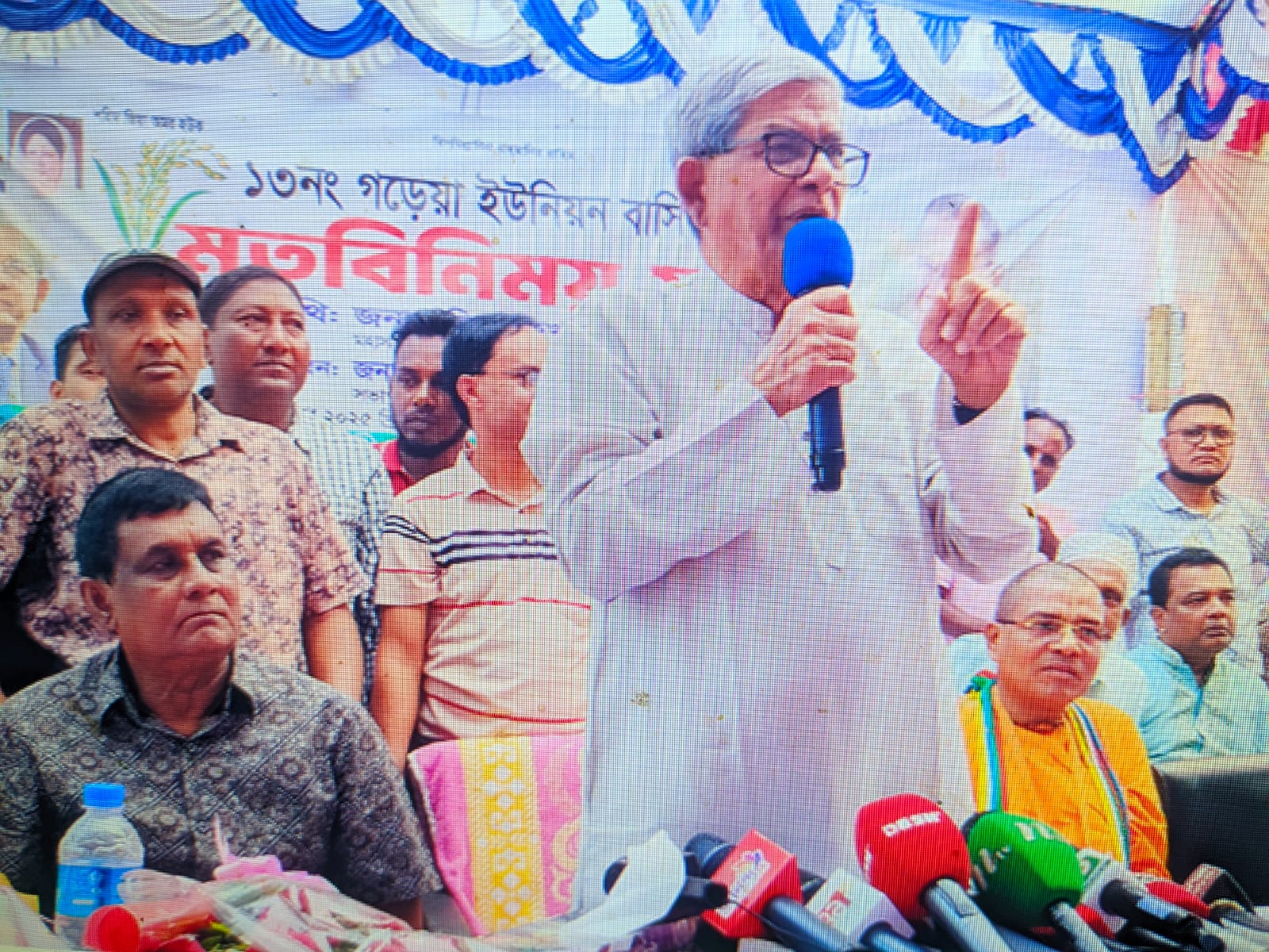 ঠাকুরগাঁওয়ে গড়েয়ায় সুধীসমাজ ও হিন্দু সম্প্রদায়ের সাথে মতবিনিময় সভায় বক্তব্য রাখছেন মির্জা ফখরুল ইসলাম আলমগীর বুধবার (১৫ অক্টোবর) সকালে সদর উপজেলার গড়েয়া ইউনিয়নের গোপালপুর স্কুল মাঠে মির্জা ফখরুল বলেন, দেশটাকে বাঁচান, বিভাজন সৃষ্টি করবেন না৷