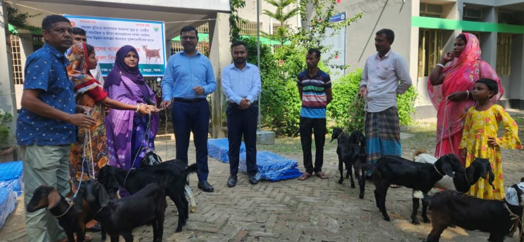 পাবনার ভাঙ্গুড়া উপজেলার প্রত্যান্ত খান মরিচ ইউপি’র নৃ-গোষ্ঠী সম্প্রদায় সুফলভোগী পাঁচ পরিবারের সদস্যের মধ্যে বিনামূল্যে ছাগল ও প্রতিপালনের ঘর নির্মাণের উপকরণ সামগ্রী বিতরণ করা হয়েছে।