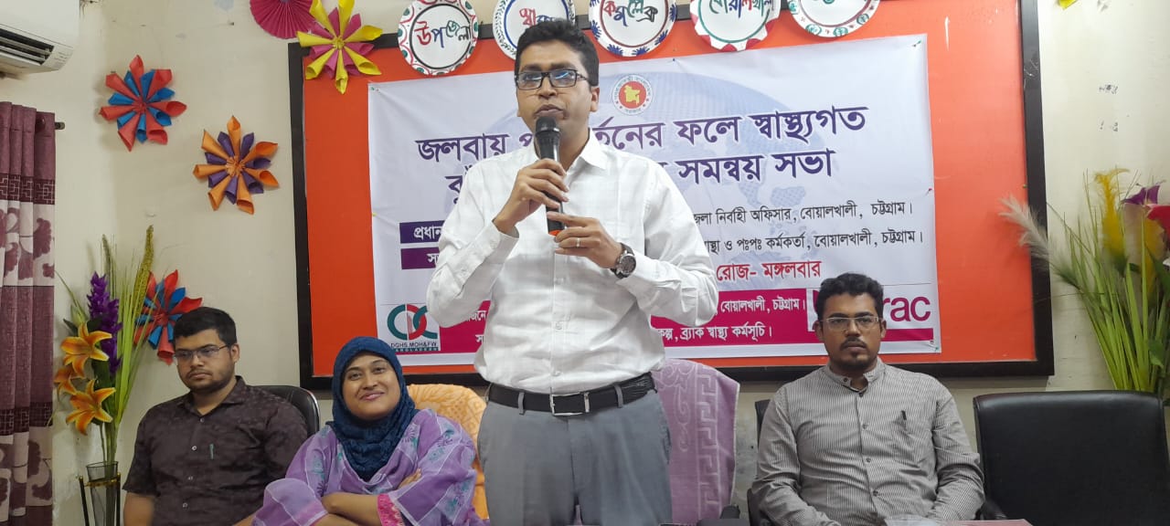 মঙ্গলবার ( ২১ অক্টোবর) বোয়ালখালী উপজেলা স্বাস্থ্য কমপ্লেক্স হলরুমে আয়োজিত " জলবায়ু পরিবর্তনে ফলে স্বাস্থ্যগত ঝুঁকি মোকাবিলায় সমস্নয় সভা " শীর্ষক এক অনুষ্ঠানে এসব কথা বলেন বক্তারা, সার্বিক সহযোগিতা জলবায়ু পরিবর্তন ও স্বাস্থ্য প্রকল্প, ব্যাক স্বাস্থ্য কর্মসূচির আয়োজন করেন।