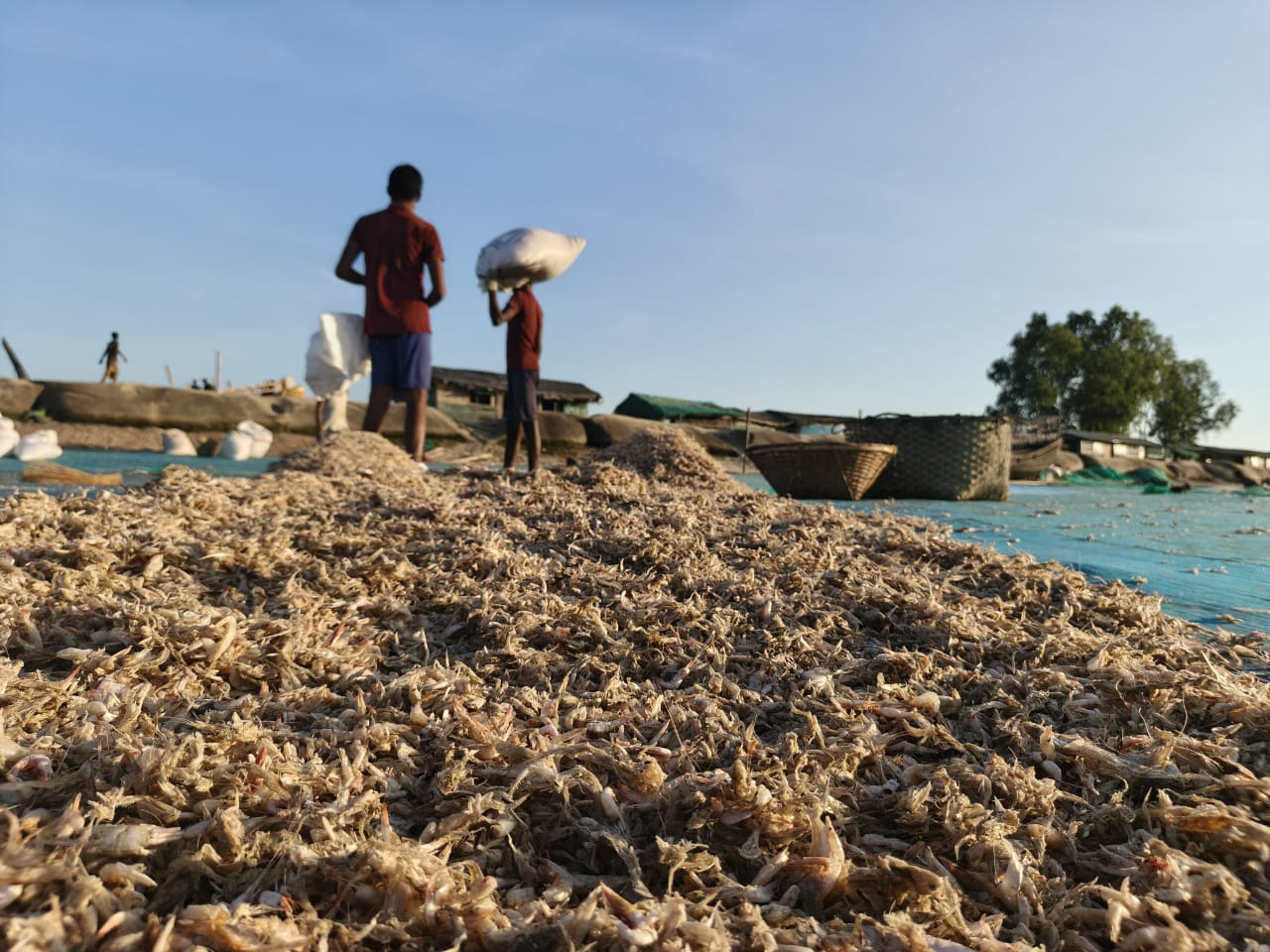 জেলে শ্রমিকেরা জানিয়েছেন, সাগরে মাছের সঙ্গে জেলেদের জালে ভোলা চিংড়ি, কাঁকড়া, কুচিয়া, চামিলা, টেকচাঁদাসহ বিভিন্ন প্রজাতির সামুদ্রিক মাছ ও পোকামাকড় পাওয়া যায়। এগুলো তাদের ব্যয় কমানোর জন্য উপকূলে এনে শুঁটকিতে পরিণত করে। পরে, আলাদা প্রজাতি সনাক্ত করে বিক্রি করা হয়। যা মাছ ও মুরগীর খাদ্য তৈরিতে ব্যবহার করে।