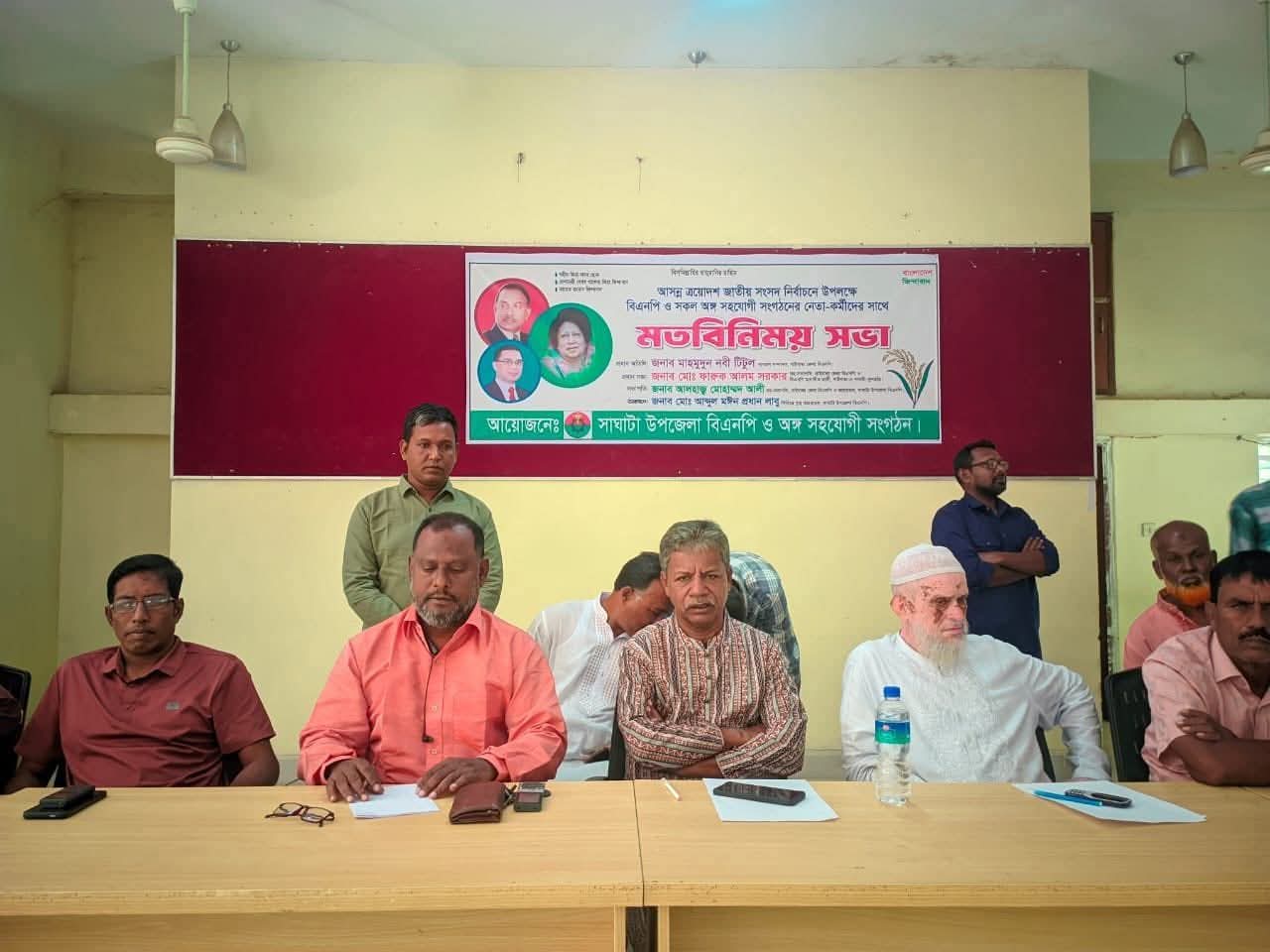 আসন্ন ত্রয়োদশ জাতীয় সংসদ নির্বাচনে করণীয় নির্ধারণ ও সাংগঠনিক কার্যক্রম জোরদারের লক্ষ্যে গাইবান্ধার সাঘাটায় বাংলাদেশ জাতীয়তাবাদী দল (বিএনপি)-এর মতবিনিময় সভা অনুষ্ঠিত হয়েছে।