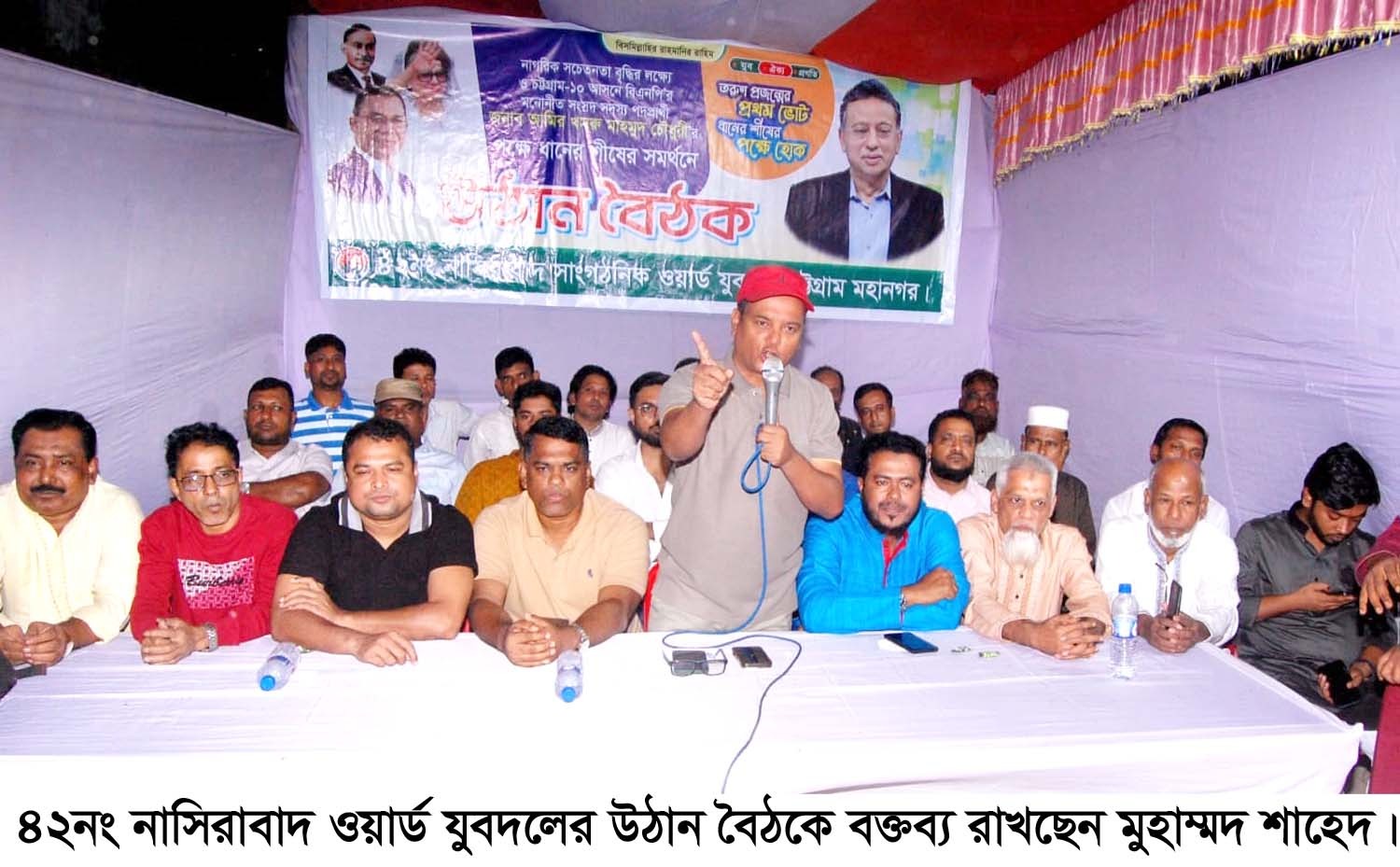 তিনি আরও বলেন-বিএনপির রাজনীতি এদেশের মাটি ও মানুষের জন্য। সবার আগে বাংলাদেশ এটাই আমাদের রাজনৈতিক দর্শন। আগামী নির্বাচনে ধানের শীষ মনোনীত প্রার্থী সংসদীয় আসন (চট্টগ্রাম -১০), বীর চট্টলার কৃতি সন্তান, বিএনপির স্থায়ী কমিটির সদস্য আমীর খসরু মাহমুদ চৌধুরীকে বিপুল ভোটে বিজয়ী করতে যুবদল দৃঢ় প্রতিজ্ঞাবদ্ধ। এই আসনটি দেশনেত্রী বেগম খালেদা জিয়ার আসন ছিলো ১৯৯১ সালে। সুতরাং এটা আমাদের জন্য অন্য আসনের চেয়ে অধিক তাৎপর্য বহন করে। ধানের শীষের বিজয় নিশ্চিত করতে সবাইকে ঐক্যবদ্ধ হয়ে ব্যক্তিগত স্বার্থ-লোভ- লালসা ত্যাগ করে নি:স্বার্থভাবে ধানের শীষের জন্য কাজ করতে হবে। প্রতিটি ঘরে ঘরে দেশনেত্রী বেগম খালেদা জিয়া ও তারেক রহমানের বার্তা তথা ৩১ দফা পৌঁছে দিতে হবে। বিশেষ অতিথির বক্তব্য রাখেন চট্টগ্রাম মহানগর স্বেচ্ছাসেবক দলের সদস্য সচিব ইঞ্জি: জমির উদ্দিন নাহিদ, ওয়ার্ড বিএনপির সদস্য সচিব ইব্রাহিম খলিল, নগর যুবদলের সাবেক যুগ্ম সম্পাদক তৌহিদুল ইসলাম রাসেল, সাবেক প্রচার সম্পাদক জিল্লুর রহমান জুয়েল, মহানগর ছাত্রদলের যুগ্ম আহ্বায়ক আসিফ চৌধুরী লিমন, ওয়ার্ড বিএনপির যুগ্ম আহ্বায়ক মুহাম্মদ রফিক, মুহাম্মদ কামাল, ইব্রাহিম খান। ৪২নং ওয়ার্ড যুবদলের সাবেক আহ্বায়ক মাসুদ আলমের সভাপতিত্বে উঠান বৈঠকে আরও বক্তব্য রাখেন মহানগর যুবদল নেতা ইলিয়াস হাসান মঞ্জু, শাবাব ইয়াজদানী, কলিম উল্লাহ, প্রফেসর সাঈদুল হক সিকদার, মুহাম্মদ আলী, নুরুল কবির পলাশ, মুহাম্মদ মাহবুব, আফতাব আহমেদ, শফিউল বাশার শামু, শাকিল চৌধুরী, মুহাম্মদ উল্লাহ চৌধুরী রিটু, মুহাম্মদ ইউসুফ, জহির, আমির হোসেন, বশর, ফিরোজ, ফারুক, নুরুল হক, খোকন মোল্লা, রশিদ, বাবুল, ইব্রাহিম, হালিম, আলম, শরীফ, পাঁচলাইশ থানা ছাত্রদলের যুগ্ম আহ্বায়ক মীর শাহরিয়ার, শুভ রায়, রুবেল, মিনহাজুল হক মিনার, ওয়াহিদুল আলম সুমিত, প্রমুখ নেতৃবৃন্দ।