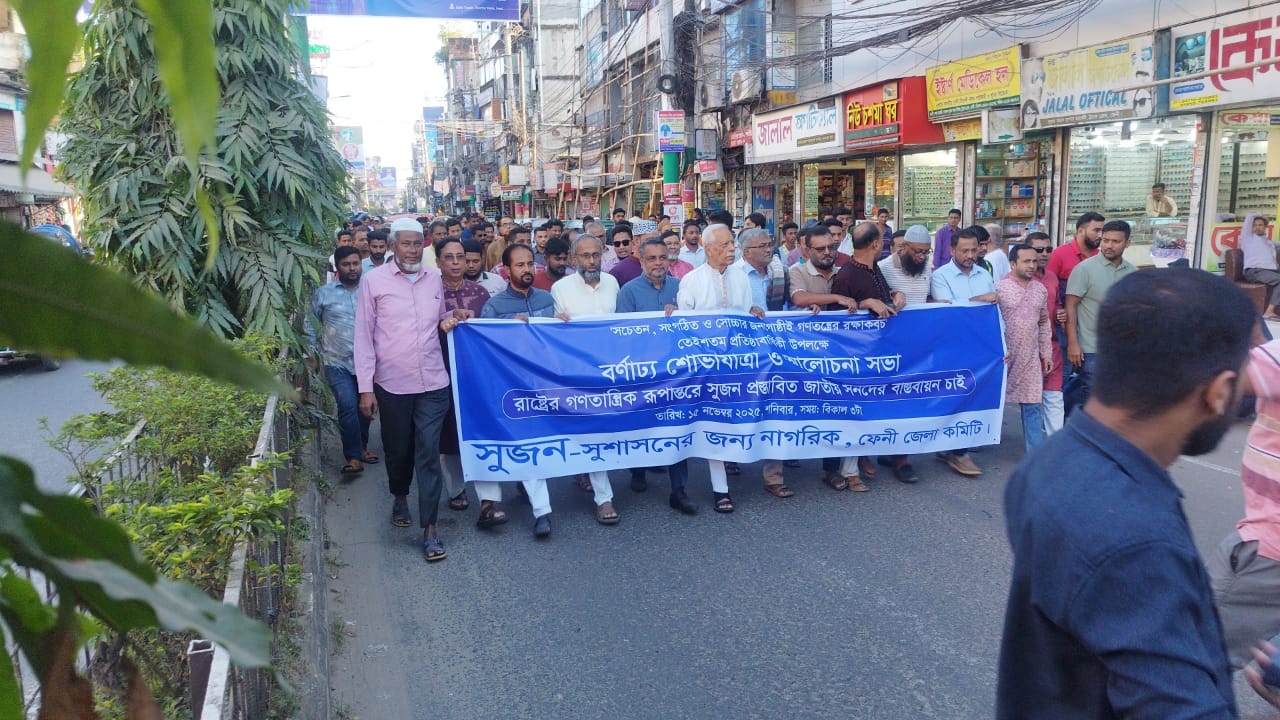 ‘সচেতন,সংগঠিত ও সোচ্চার জনগোষ্ঠীই গণতন্ত্রের রক্ষাকবচ’ এ প্রতিপাদ্যকে সামনে রেখে সুজন- সুশাসনের জন্য নাগরিকের তেইশতম প্রতিষ্ঠাবার্ষিকী উপলক্ষে ফেনীতে বর্ণাঢ্য শোভাযাত্রা ও আলোচনা সভা অনুষ্ঠিত হয়েছে।