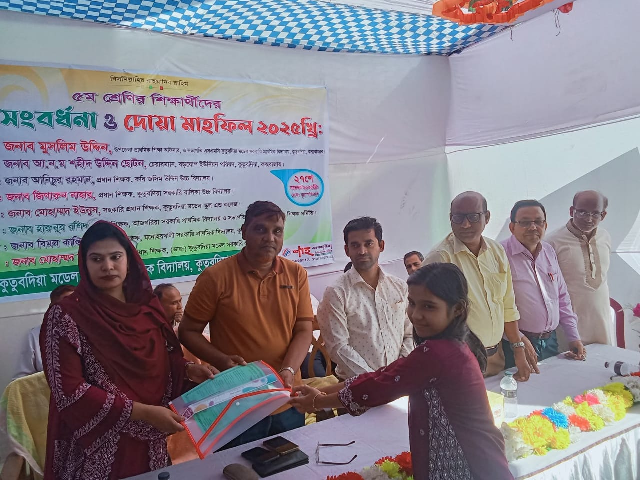 পাঠ্যজীবনের প্রথম ধাপ সফলভাবে সমাপ্ত করায় কক্সবাজারের কুতুবদিয়া উপজেলার কুতুবদিয়া মডেল সরকারি প্রাথমিক বিদ্যালয়ের ৫ম শ্রেণির কোমলমতি শিশু শিক্ষার্থীদের বিদায় সংবর্ধনা ও দোয়া মাহফিল উপজেলা প্রাথমিক শিক্ষা অফিসার মুসলিম উদ্দিনের সভাপতিত্বে অনুষ্ঠিত হয়েছে।