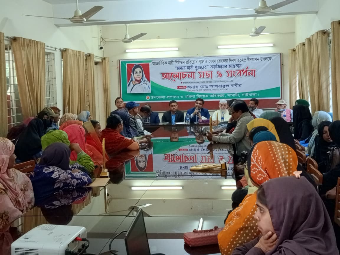 অদম্য নারী সম্মাননা প্রদান উপজেলা পরিষদ হলরুমে সাঘাটা উপজেলা নির্বাহী অফিসার মোঃ আশরাফুল কবীরের সভাপতিত্বে অনুষ্ঠিত আলোচনা সভায় সমাজের বিভিন্ন ক্ষেত্রে অসামান্য অবদান রাখায় পাঁচজন অদম্য নারীকে ‘অদম্য নারী পুরস্কার’-এ ভূষিত করা হয়।নারীর ক্ষমতায়ন, অধিকার রক্ষা এবং সমাজ উন্নয়নে তাঁদের অবদানকে বিশেষভাবে তুলে ধরা হয় অনুষ্ঠানে।আলোচনা সভায় বিশিষ্টজনদের বক্তব্য