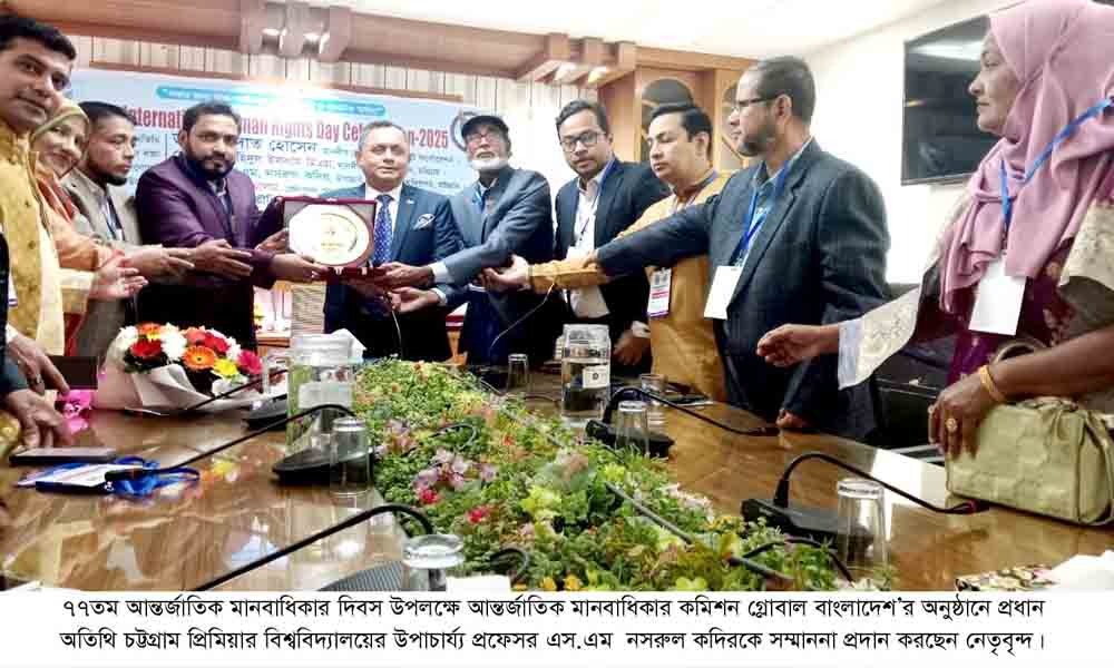 বিশ্ববিদ্যালয়ের উপাচার্য প্রফেসর এস.এম. নসরুল কদির বলেছেন-বাংলাদেশ মহান মুক্তিযুদ্ধের মাধ্যমে ১৯৭১ সালে স্বাধীনতা লাভ করেছে। বিভিন্ন সময়ে বাংলাদেশের জনগণ স্বাধীনতা এবং মানবাধিকার লঙ্ঘিত হয়েছে। স্বাধীনতার ৫৪ বছর পর এখনও পর্যন্ত মানুষ গণতান্ত্রিক অধিকার, বাক স্বাধীনতা, গণমাধ্যমের স্বাধীনতা এবং মানবাধিকার রক্ষায় সংগ্রাম করে যাচ্ছে। আগামী জাতীয় সংসদ নির্বাচনের মাধ্যমে গণতান্ত্রিক প্রক্রিয়ায় যে সরকার আসুক না কেন, তাদেরকে রাষ্ট্রীয় সংস্কারের দিকে অধিক মনোযোগী হতে হবে। এবং এ কাজে মানববাধিকার সংগঠনগুলোকে মানবাধিকার রক্ষায় দেশী-বিদেশী স্বেচ্ছাসেবী সংগঠনগুলোর সমন্বয়ে গণমূখী কর্মকাণ্ড বাড়াতে হবে। তিনি বুধবার ৭৭তম আন্তর্জাতিক মানবাধিকার দিবস উপলক্ষে আইএইচআরসিজি বাংলাদেশ’র উদ্যোগে চট্টগ্রাম সিটি কর্পোরেশন সম্মেলন কক্ষে এক আলোচনা সভা ও সনদপত্র বিতরণ অনুষ্ঠানে প্রধান অতিথির বক্তব্য রাখতে গিয়ে এ কথা বলেন। উক্ত অনুষ্ঠানে সভাপতিত্ব করেন আইএইচআরসিজি বাংলাদেশ’র ভাইস প্রেসিডেন্ট মো: আমির হোসেন খাঁন। অনুষ্ঠানে উদ্বোধনী বক্তব্যে আইএইচআরসিজি বাংলাদেশ’র জেনারেল সেক্রেটারী সৈয়দ মোস্তফা আলম বলেন, মানবাধিকার সংগঠনের নামে বাংলাদেশের কোন জায়গায় চাঁদাবাজী দখলবাজী, মামলা বাজী করে জনগণকে হয়রানী করা যাবে না। যারা এ কাজে জড়িত থাকবেন তাদেরকে আইন শৃঙ্খলা বাহিনীর হাতে তুলে দিতে হবে। এবং আগামী ত্রয়োদশ জাতীয় সংসদ নির্বাচনে গণতন্ত্র প্রতিষ্ঠার জন্য জনমুখী এবং স্বাধীনতা রক্ষায় যে দল গুরুত্বপূর্ণ ভূমিকা পালন করতে পারবে তাদেরকে নির্বাচিত করার আহ্বান জানান। বিশেষ অতিথির বক্তব্যে বাংলাদেশ আইএইচআরসিজি’র নির্বাহী পরিচালক নুরুল আবসার তৌহিদ বলেন, মানবাধিকার সংগঠনকে বাংলাদেশে প্রান্তিক জনগণের কাছে পৌছে দেওয়ার জন্য সকল জেলায় সৎ ও যোগ্য মানুষকে সংগঠনের নেতৃত্বে আসার আহ্বান জানান। আইএইচআরসিজি চট্টগ্রাম বিভাগীয় সমন্বয়কারী মুহাম্মদ আওরঙ্গজেব খান সম্রাট, নেত্রী নাহিদা আক্তার নাজু ও চম্পা রানী নন্দীর যৌথ সঞ্চালনায় বক্তব্য রাখেন সংগঠনের যুগ্ম সম্পাদক মাঈন উদ্দীন আহমদ, সংঠনের নারী ও শিশু বিষয়ক সম্পাদিকা তাহেরা শারমীন, সংগঠনের কেন্দ্রীয় নেতা ইঞ্জিনিয়ার আবু তৈয়ব, সংগঠনের বিভাগীয় নেতা মোঃ আব্দুর রহিম, পটিয়া উপজেলার সাবেক মহিলা ভাইস চেয়ারম্যান নারী নেত্রী আফরোজা বেগম জলি, অপকার নির্বাহী পরিচালক মোঃ আলমগীর, চট্টগ্রাম উত্তর জেলার সাধারণ সম্পাদক মোঃ ইউনুচ তালুকদার, চট্টগ্রাম দক্ষিণ জেলার সাধারণ সম্পাদক চৌধুরী ওহাব, চট্টগ্রাম মহানগর কমিটির যুগ্ম সমন্বয়কারী ডা. জামাল উদ্দিন, আর্ন্তাতিক ইসলামী বিশ্ববিদ্যালয়ের সভাপ