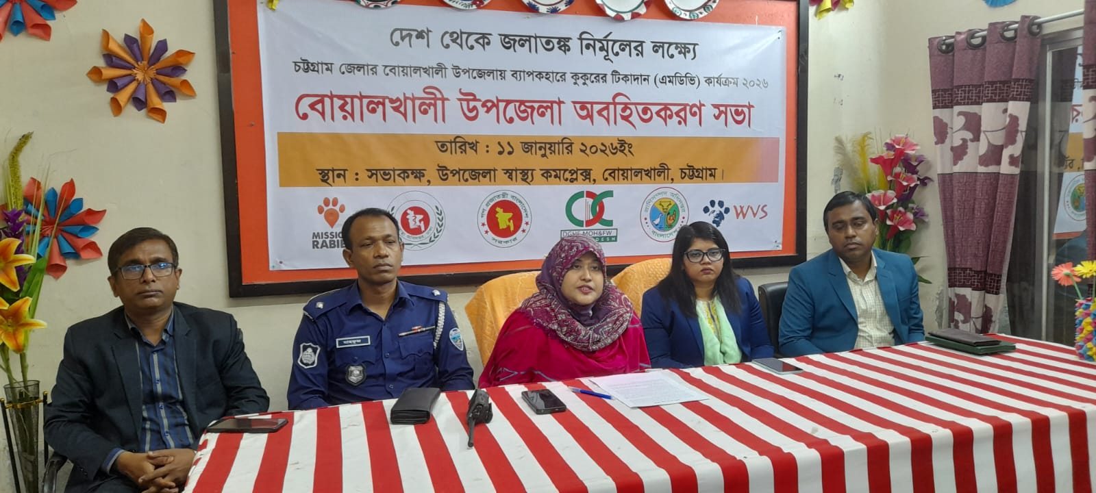 উপজেলা স্বাস্থ্য ও পরিবার পরিকল্পনা কর্মকর্তা ডা.জাফরিন জাহেদ জিতি,র সভাপতিত্বে সভায় প্রধান অতিথি হিসেবে উপস্থিত ছিলেন বোয়ালখালী পৌরপ্রশাসক কানিজ ফাতিমা, বিশেষ অতিথি হিসেবে উপস্থিত ছিলেন উপজেলা প্রাণিসম্পদ কর্মকর্তা ডা.রুমন তালুকদার, অফিসার ইনচার্জ ওসি মাহফুজ রহমান, উপজেলা প্রাথমিক শিক্ষা কর্মকর্তা রনজন ভট্টাচার্য, আবদুর কবীর,মোঃ কাওসার আহম্মেদ এম ডি ভি,সুপারভাইজার, উপজেলার ৯ ইউনিয়নের ও পৌরসভার সকল ইনচার্জগন সাংবাদিক ও বিভিন্ন শ্রেণি-পেশার মানুষ সভায় অংশগ্রহণ করেন।