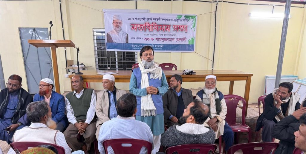 চট্টগ্রাম-১০ আসনে জামায়াতে ইসলামী মনোনীত সংসদ সদস্য প্রার্থী, নগর জামায়াতের সাংগঠনিক সম্পাদক ও সাবেক কাউন্সিলর অধ্যক্ষ শামসুজ্জামান হেলালী বলেছেন, ধর্ম ও বর্ণ নির্বিশেষে সবার জন্য ন্যায় ও ইনসাফ প্রতিষ্ঠাই তাঁর রাজনীতির মূল লক্ষ্য। তিনি বলেন, নির্বাচিত হলে ধর্মের ভিত্তিতে কোনো ধরনের বৈষম্য করা হবে না। ইসলামের শিক্ষা অনুযায়ী একটি ন্যায়ভিত্তিক, শান্তিপূর্ণ ও মানবিক সমাজ গঠনে সকল নাগরিককে সমান মর্যাদা ও সুযোগ-সুবিধা নিশ্চিত করা জরুরি।