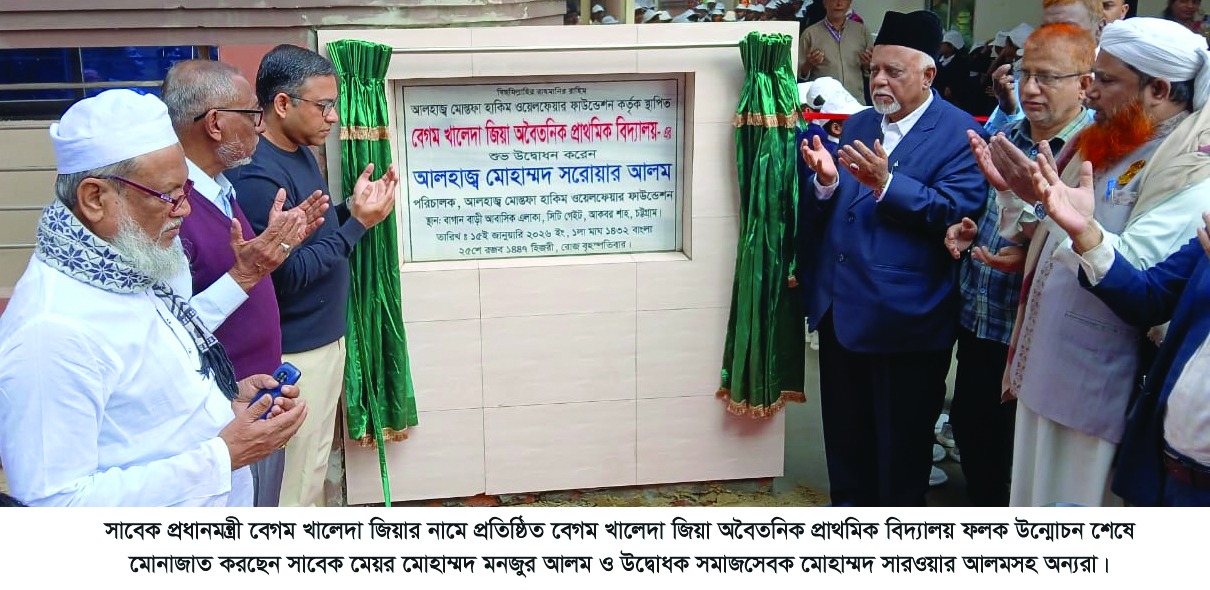 কর্পোরেশনের সাবেক মেয়র, আলহাজ্ব মোস্তফা হাকিম ওয়েলফেয়ার ফাউন্ডেশন ও আলহাজ্ব হোসনে আরা মনজুর ওয়েলফেয়ার ট্রাস্টের প্রতিষ্ঠাতা আলহাজ্ব মোহাম্মদ মনজুর আলমের অর্থায়নে প্রতিষ্ঠিত বেগম খালেদা জিয়া অবৈতনিক প্রাথমিক বিদ্যালয় বৃহস্পতিবার সকালে শুভ উদ্বোধন হয়েছে। সাবেক মেয়র আলহাজ¦ এম. মনজুর আলমের অর্থায়নে প্রতিষ্ঠিত বেগম খালেদা জিয়া অবৈতনিক প্রাথমিক বিদ্যালয় প্রথম দিনে চার শত জন ছাত্র-ছাত্রী নিয়ে উদ্বোধন হলো।