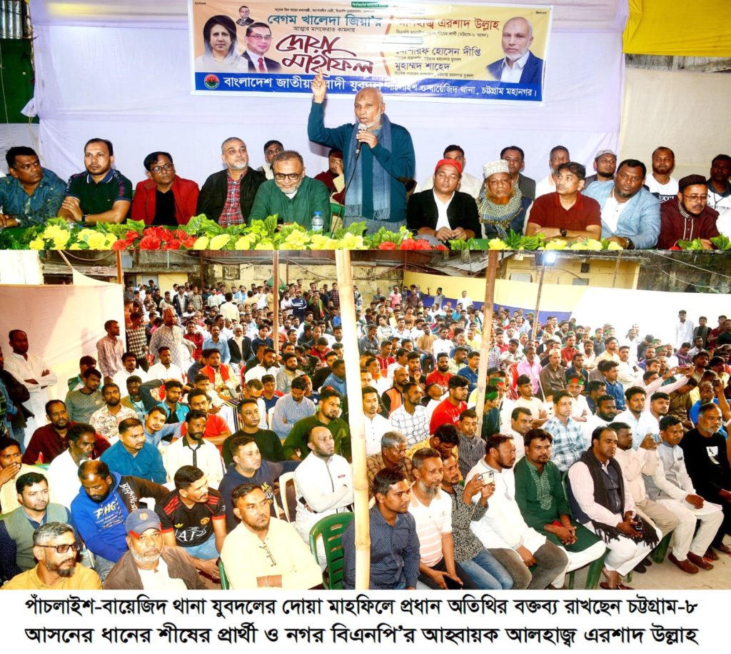 তিনি আজ ১৬ জানুয়ারি রোজ শুক্রবার বিকাল ৪ টায় রৌফাবাদ এলাকায় চট্টগ্রাম-৮ সংসদীয় আসনের চট্টগ্রাম মহানগর যুবদলের আওতাধীন পাঁচলাইশ ও বায়েজিদ থানা যুবদলের অন্তর্গত ৭ নং পশ্চিম ষোলশহর ওয়ার্ড, ৩ নং পাঁচলাইশ ওয়ার্ড ও ৪৩ নং আমিন শিল্পাঞ্চল সাংগঠনিক ওয়ার্ড যুবদল আয়োজিত মরহুমা বেগম খালেদা জিয়া’র আত্মার মাগফেরাত কামনায় দোয়া মাহফিলে প্রধান অতিথির বক্তব্যে উপরোক্ত কথা বলেন।