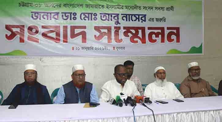চট্টগ্রাম-৮ (চান্দগাঁও-বোয়ালখালী) আসনে ১০-দলীয় নির্বাচনী ঐক্যের সিদ্ধান্ত অনুযায়ী এনসিপির প্রার্থীকে সমর্থন দিয়ে নিজের প্রার্থিতা প্রত্যাহারের ঘোষণা দিয়েছেন জামায়াতে ইসলামীর মনোনীত প্রার্থী ডা. আবু নাসের। বুধবার চট্টগ্রাম মহানগরের জামায়াত কার্যালয়ে আয়োজিত এক সংবাদ সম্মেলনে এ ঘোষণা দেন নগর জামায়াতের সহকারী সেক্রেটারি মোরশেদুল ইসলাম চৌধুরী। তবে অসুস্থতার কারণে সংবাদ সম্মেলনে উপস্থিত থাকতে পারেননি ডা. আবু নাসের। সংবাদ সম্মেলনে চট্টগ্রাম-৮ আসনের এনসিপি প্রার্থী মো. জোবাইরুল হাসান আরিফ এবং বাংলাদেশ খেলাফত মজলিসের প্রতিনিধি মোহাম্মদ এনায়েত উল্লাহ উপস্থিত ছিলেন।এনায়েত উল্লাহ ওই আসন থেকে ইতিমধ্যে নিজের প্রার্থিতা প্রত্যাহার করেছেন।