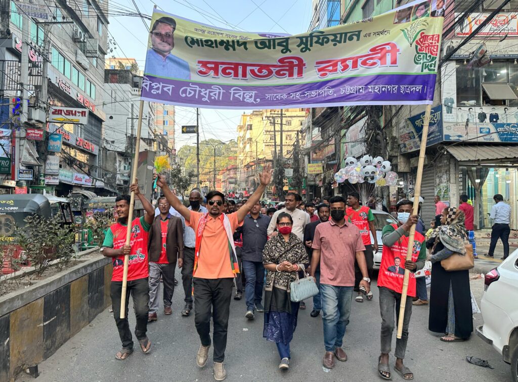চট্টগ্রাম মহানগর ছাত্রদলের সাবেক সহ-সভাপতি বিপ্লব চৌধুরী বিল্লুর নেতৃত্বে চট্টগ্রাম–৯ সংসদীয় আসনের ধানের শীষের মনোনীত প্রার্থী মোহাম্মদ আবু সুফিয়ানের সমর্থনে সনাতনী র‍্যালি অনুষ্ঠিত হয়েছে। র‍্যালিটি নগরের বিভিন্ন সড়ক প্রদক্ষিণ করে ঐতিহাসিক লালদীঘির ময়দানে এসে সমাপ্ত হয়।