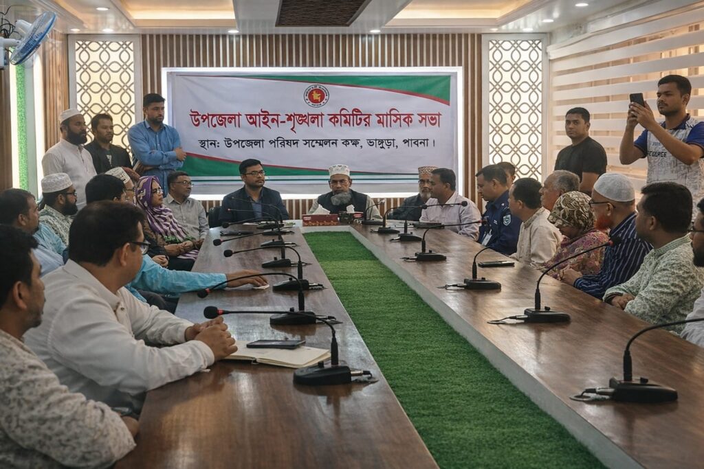 পাবনার ভাঙ্গুড়ায় আইন-শৃঙ্খলা কমিটির মাসিক সভা অনুষ্ঠিত হয়েছে। বৃহস্পতিবার সকালে উপজেলা পরিষদ সম্মেলন কক্ষে উপজেলা নির্বাহী কর্মকর্তা তাপস পালের সভাপতিত্বে এ সভা অনুষ্ঠিত হয়।