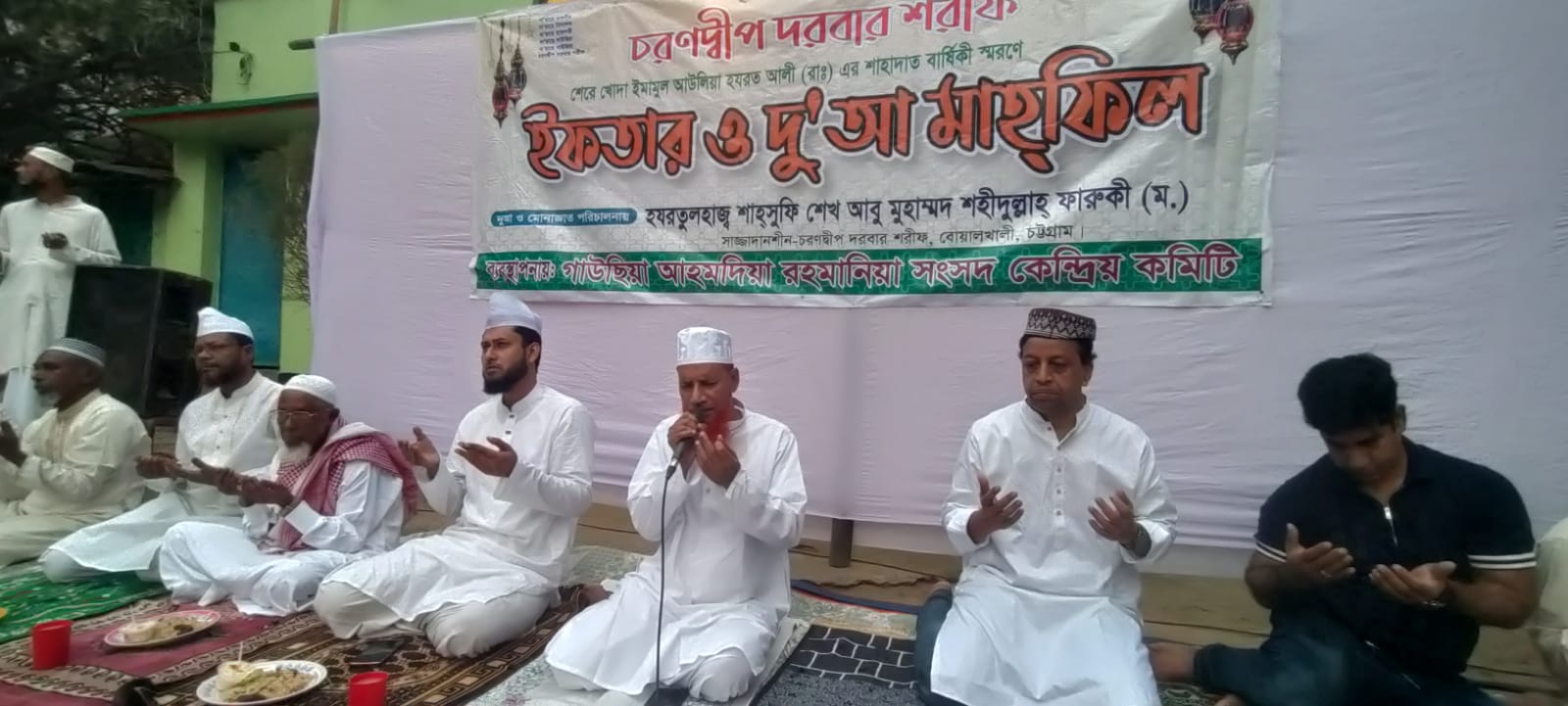 ১১ মার্চ, বুধবার গাউসিয়া হক ভাণ্ডারী খানকাহ্ শরিফের ব্যবস্থাপনায় প্রতি বছরের ন্যায় এই বছরও হযরত শেরে খোদা মওলা আলী (র.), খাতুনে জান্নাত মা ফাতেমা (রহ.) উরশ মোবারক ও শহীদ বদর দিবস উপলক্ষে আলোচনা সভা, মিলাদ শরিফ ও ইফতার মাহফিল খানকাহ্ শরিফ প্রাঙ্গণে অনুষ্ঠিত হয়।