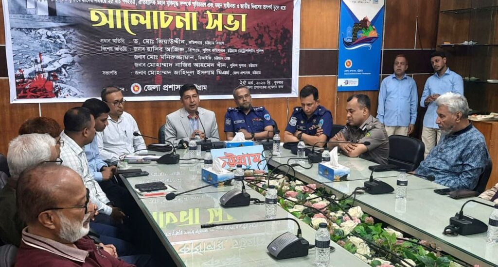 চট্টগ্রাম বিভাগীয় কমিশনার ড. মোঃ জিয়াউদ্দীন বলেছেন, ১৯৭১ সালের ২৫ মার্চ কালো রাতে জাতির শ্রেষ্ঠ সন্তানেরা পাকিস্তানি হানাদার বাহিনীর হাতে গণহত্যার শিকার হয়েছিল। এই হত্যাকান্ডের সূত্র ধরে চট্টগ্রাম থেকেই মহান স্বাধীনতার ডাক এসেছিল। পরবর্তীতে মুক্তিযুদ্ধকে সফল করে বিজয় ছিনিয়ে আনার জন্য মুক্তিযোদ্ধারা ৯ মাস ধরে যে যুদ্ধ করেছিলেন সে জন্য কৃতজ্ঞতার দাবীদার সেটি কখনো জানিয়ে শেষ করা যাবেনা। এ জন্য চট্টগ্রাম গৌরবের জায়গা। মহান মুক্তিযুদ্ধের ইতিহাসে চট্টগ্রাম বাংলাদেশের সর্বোচ্চ একটি গুরুত্বপূর্ণ স্থান।