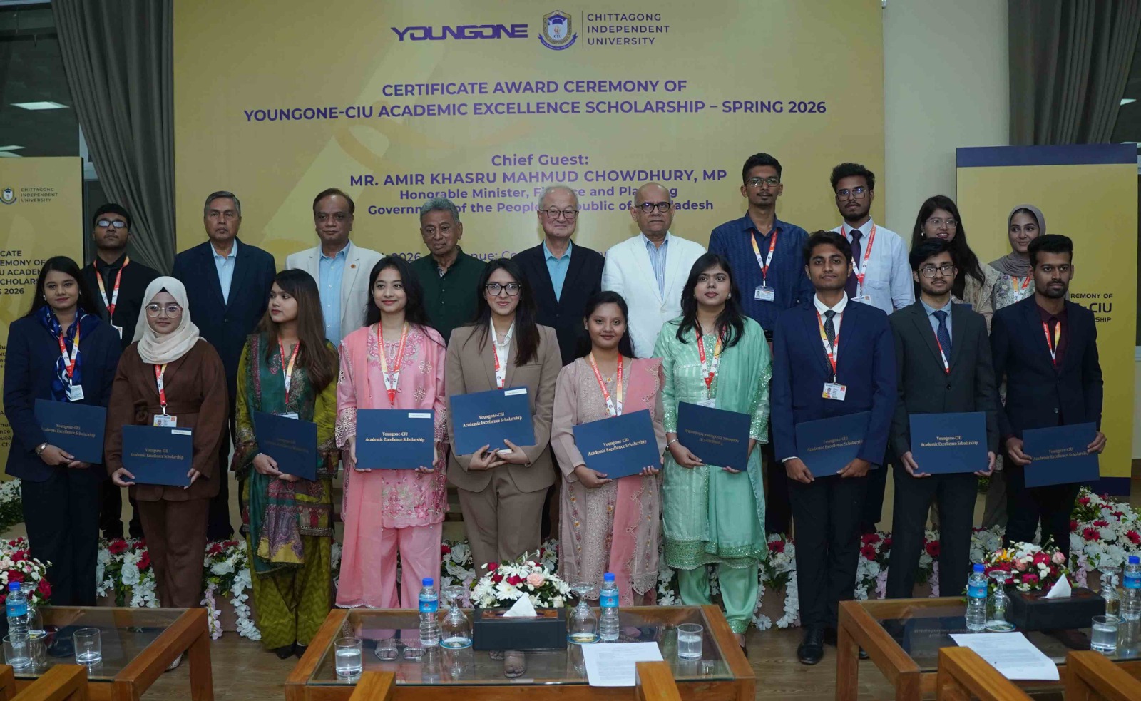 চিটাগং ইন্ডিপেন্ডেন্ট ইউনিভার্সিটি’র (সিআইইউ) শিক্ষার্থীদের স্কলারশিপ প্রদান করেছে কোরিয়ান শিল্পগোষ্ঠী ইয়ংওয়ান কর্পোরেশন। “ইয়ংওয়ান-সিআইইউ একাডেমিক এক্সিলেন্স স্কলারশিপ প্রোগ্রাম” এর আওতায় অ্যাওয়া র্ড প্রদান অনুষ্ঠান শুক্রবার বিকালে কোরিয়ান ইপিজেড এলাকাস্থ ইয়ংওয়ান কর্পোরেশন মিলনায়তনে অনুষ্ঠিত হয়। এতে শিক্ষার্থীদের হাতে স্কলারশিপ সনদ বিতরণ করেন অনুষ্ঠানের প্রধান অতিথি অর্থ ও পরিকল্পনা মন্ত্রী আমীর খসরু মাহমুদ চৌধুরী এবং সন্মানিত অতিথি ইয়ংওয়ান কর্পোরেশন ও কোরিয়ান ইপিজেড এর প্রতিষ্ঠাতা চেয়ারম্যান এবং প্রধান নির্বাহী (সিইও) কিহাক সুং।