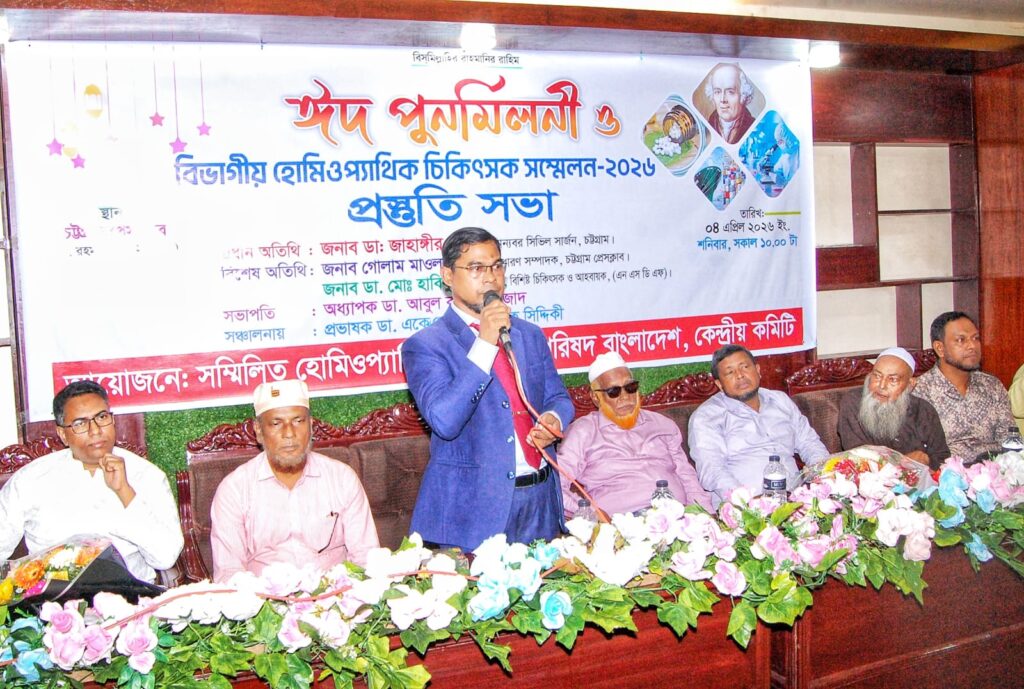 এ পদ্ধতির চিকিৎসা সেবায় যারা রয়েছেন,সকলকেই আরো দক্ষ ও আন্তরিকতার সাথে যোগ্যতা অর্জন করতে হবে। তিনি ৪ এপ্রিল চট্টগ্রাম প্রেস ক্লাবে বিভাগীয় সম্মেলনের প্রস্তুতি সভায় সাবেক অধ্যক্ষ ডাঃ আবুল কালাম আজাদ এর সভাপতিত্বে এবং সাবেক হোমিওপ্যাথিক বোর্ সদস্য ডাঃ এ কে এম ফজলুল হক এর সঞ্চালনায় প্রধান অতিথির বক্তব্য রাখছিলেন।
