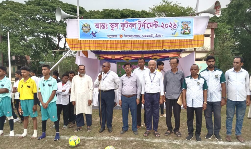 বোয়ালখালী উপজেলা নির্বাহী অফিসার মেহেদী হাসান ফারুক বলেছেন শিক্ষার্থীদের পড়াশোনার পাশাপাশি খেলাধুলায় মনোনিবেশ করতে হবে। খেলাধুলা মানুষের মনকে সতেজ ও সুস্থ রাখে। বর্তমান সরকার খেলাধুলার উপর গুরুত্ব আরোপ করেছেন। গত মঙ্গলবার বিকাল ৪ টায় উপজেলা প্রশাসন কর্তৃক আয়োজিত পূর্ণ চন্দ্র সেন সারোয়াতলী স্কুল মাঠে অনুষ্ঠিত আন্ত:স্কুল ফুটবল টুর্নামেন্ট উদ্বোধনী অনুষ্ঠানে প্রধান অতিথির বক্তব্যে জনাব মেহেদী হাসান ফারুক এই কথা বলেন। স্কুলের প্রধান শিক্ষক মো: কামরুল হাসানের সভাপতিত্বে অনুষ্ঠিত এই অনুষ্ঠানে বিশেষ অতিথি ছিলেন উপজেলা ক্রীড়া সংস্থার সাবেক নির্বাচিত সহ সভাপতি সাংবাদিক মো: মুজাহিদুল ইসলাম।