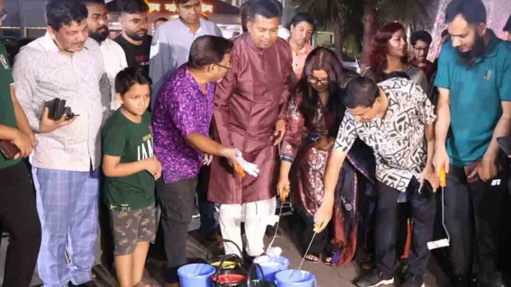 চট্টগ্রামে দেড় কিলোমিটার জুড়ে সড়কে আলপনা অঙ্কনের ব্যতিক্রমী আয়োজন