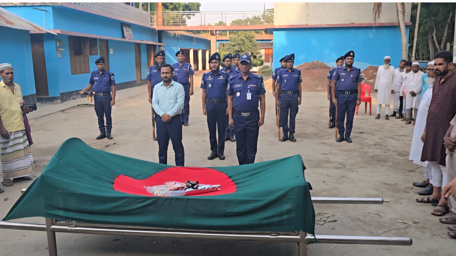এ সময় বাংলাদেশের জাতীয় পতাকা দিয়ে আচ্ছাদিত মরহুমের মরদেহে পুষ্প অর্পণ করা হয়।পাবনা জেলা পুলিশ লাইনের একটি চৌকস দল বীর মুক্তিযোদ্ধা কে গার্ড অব অনার দিয়ে সন্মান প্রদান করেন। এক মিনিট নীরবতা পালন শেষে পার-ভাঙ্গুড়া ঈদগাঁ মাঠে জানাজা এবং মাঠ সংলগ্ন কবরস্থানে তাকে দাফন করা হয়।